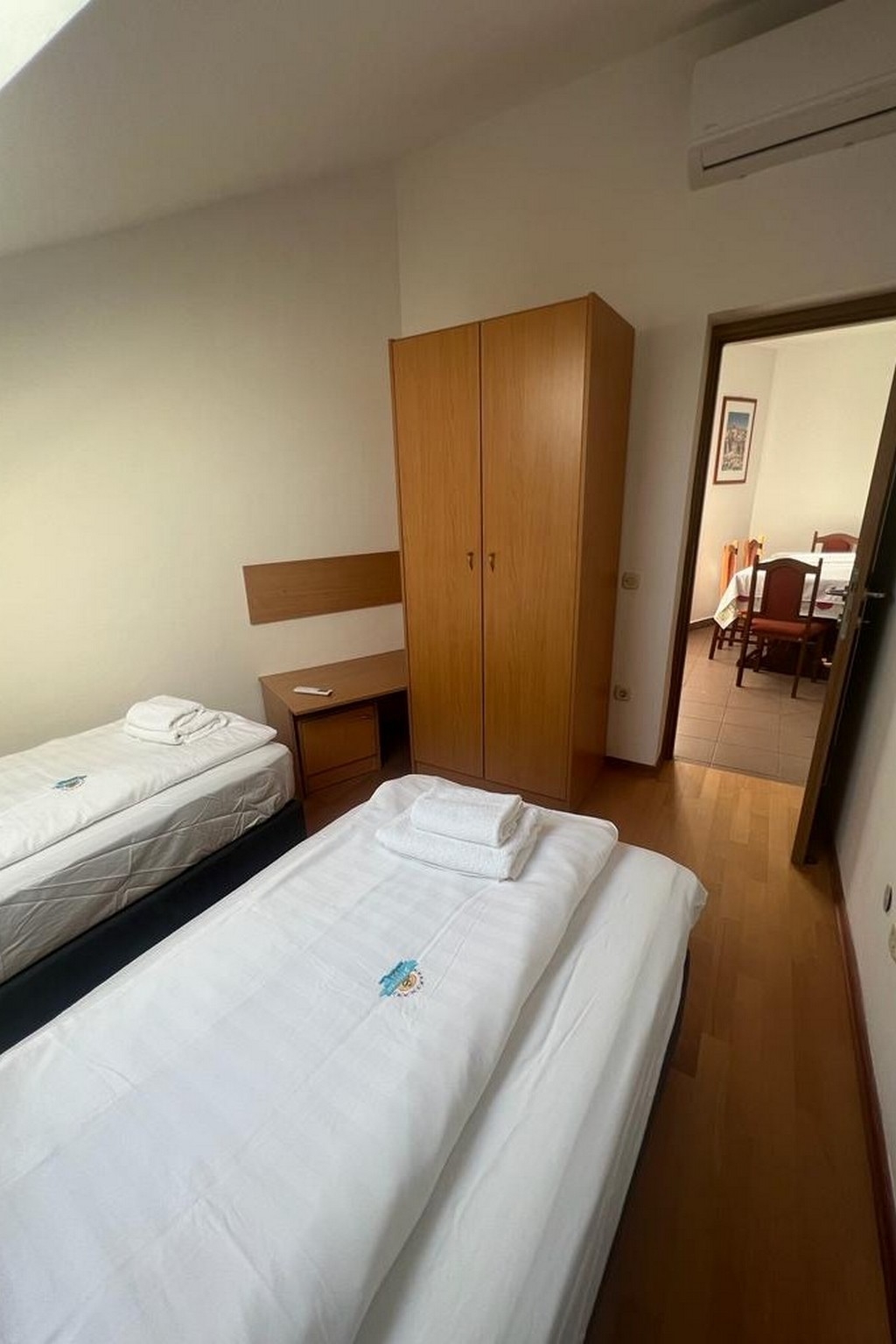 Apartment can accommodate 6 guests. Beds are situated in 2 sleeping rooms, but also in the living room, within 55m2. Guests can use a private terrace to enjoy the warm summer evenings. The apartment offers the sea view. Food can be prepared using barbecue which is shared with other guests too. INCLUDED IN THE PRICE: tourist tax, final cleaning, air-conditioning, parking, internet, additional bed, iron, ironing board, hairdryer, portable barbecue. The availability of additional services for your chosen dates of stay, as well as their prices (if none are listed) must be checked ahead of time. Any additional services not shown in the price calculation are payable directly to the property owner and only if used by the visitor.
