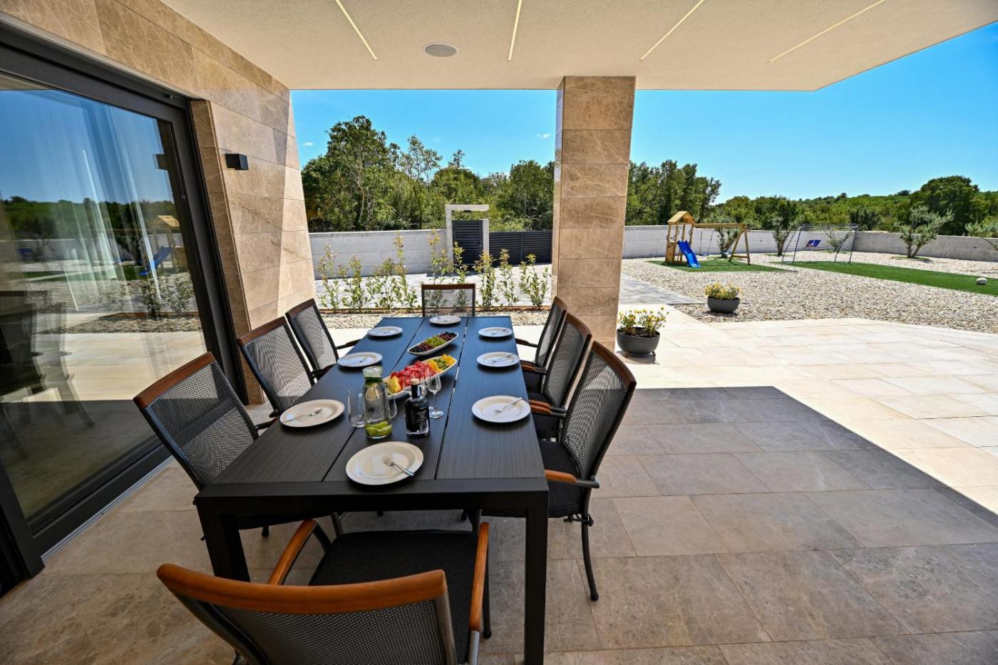 The villa features a childrens playground and a picnic area.