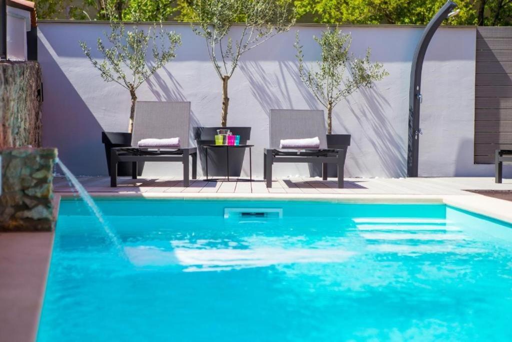 Two-Bedroom Villa. This villa boasts a private pool and a fireplace. Featuring a private entrance, this air-conditioned villa comprises 1 living room, 2 separate bedrooms and 2 bathrooms with a shower and a hairdryer. Guests will find a stovetop, a refrigerator, a dishwasher and kitchenware in the kitchen. The villa also provides guests with a barbecue. Boasting a terrace with garden views, this villa also provides a washing machine and a flat-screen TV with satellite channels. The unit offers 3 beds.