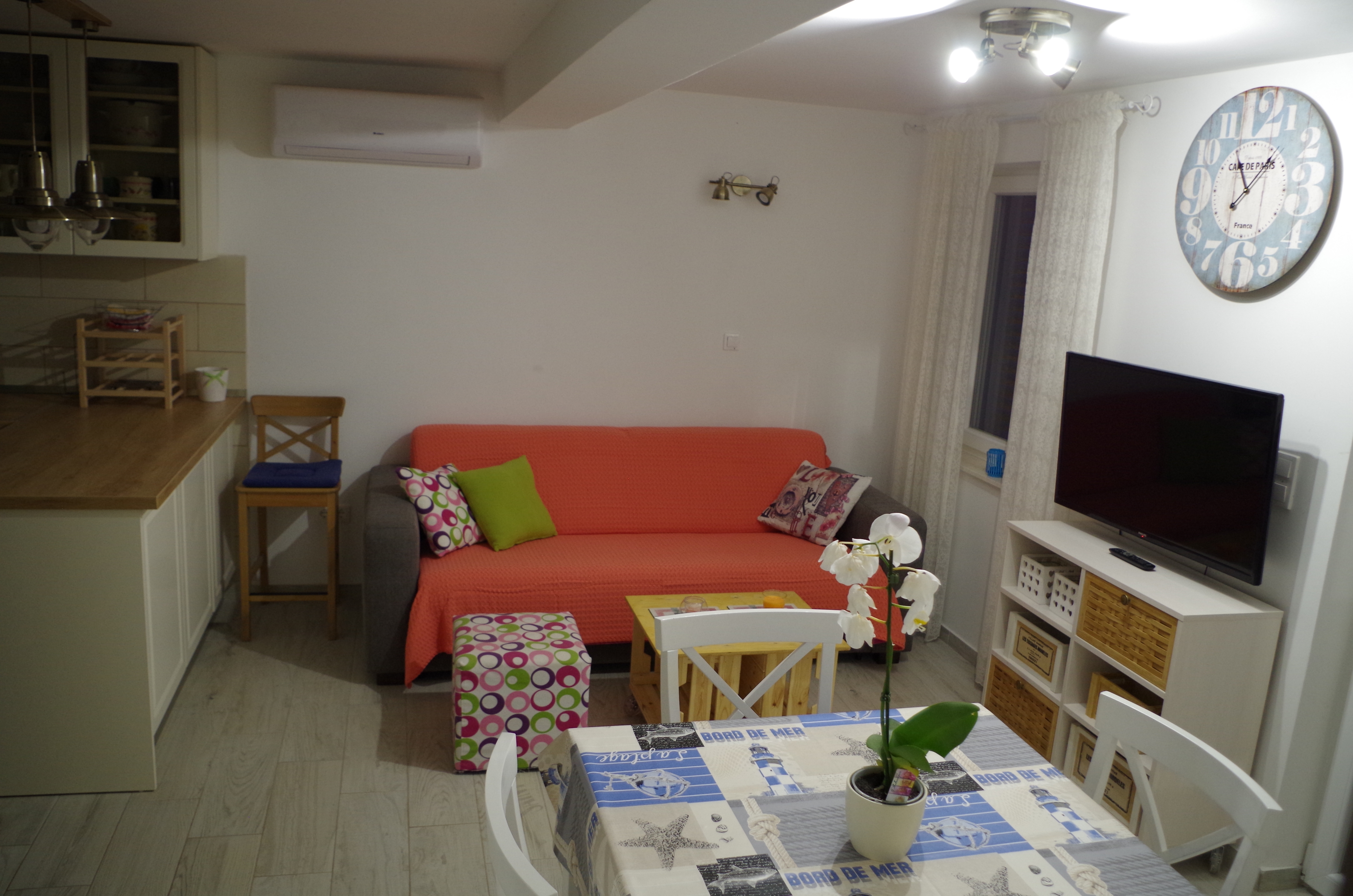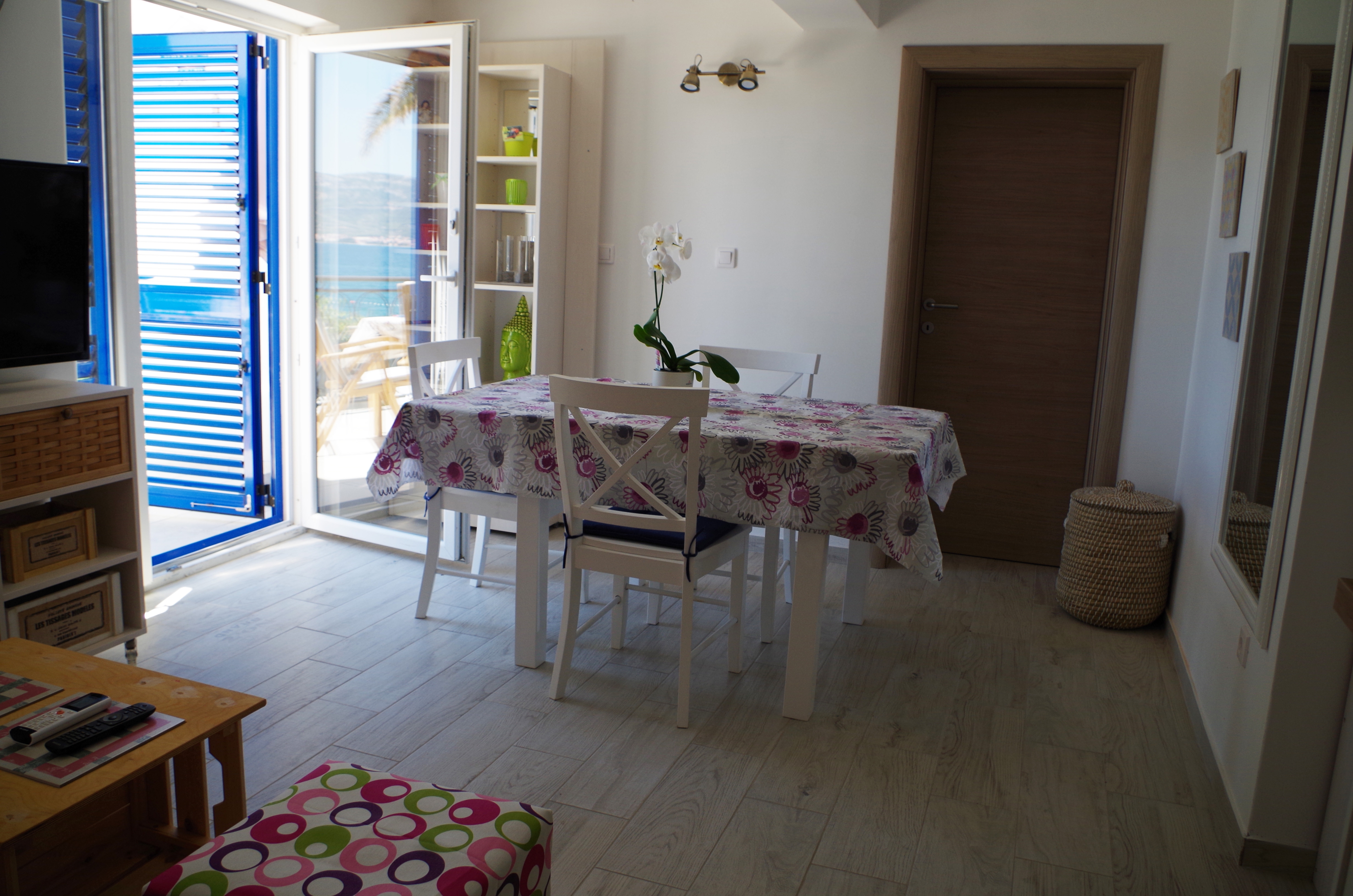 Apartment can accommodate 5 guests. Beds are situated in 2 sleeping rooms, but also in the living room, within 41m2. Guests can use a private terrace to enjoy the warm summer evenings. The apartment offers the sea view. For full enjoyment and relaxation there is a private barbecue for this accommodation guests only. INCLUDED IN THE PRICE: tourist tax, final cleaning, air-conditioning, parking, internet, iron, ironing board, hairdryer, portable barbecue. OBLIGATORY ADDITIONAL COSTS: short stay fee (surcharge depending on a number of booked nights: 30% - 1, 20% - 2, 10% - 3). The availability of additional services for your chosen dates of stay, as well as their prices (if none are listed) must be checked ahead of time. Any additional services not shown in the price calculation are payable directly to the property owner and only if used by the visitor.