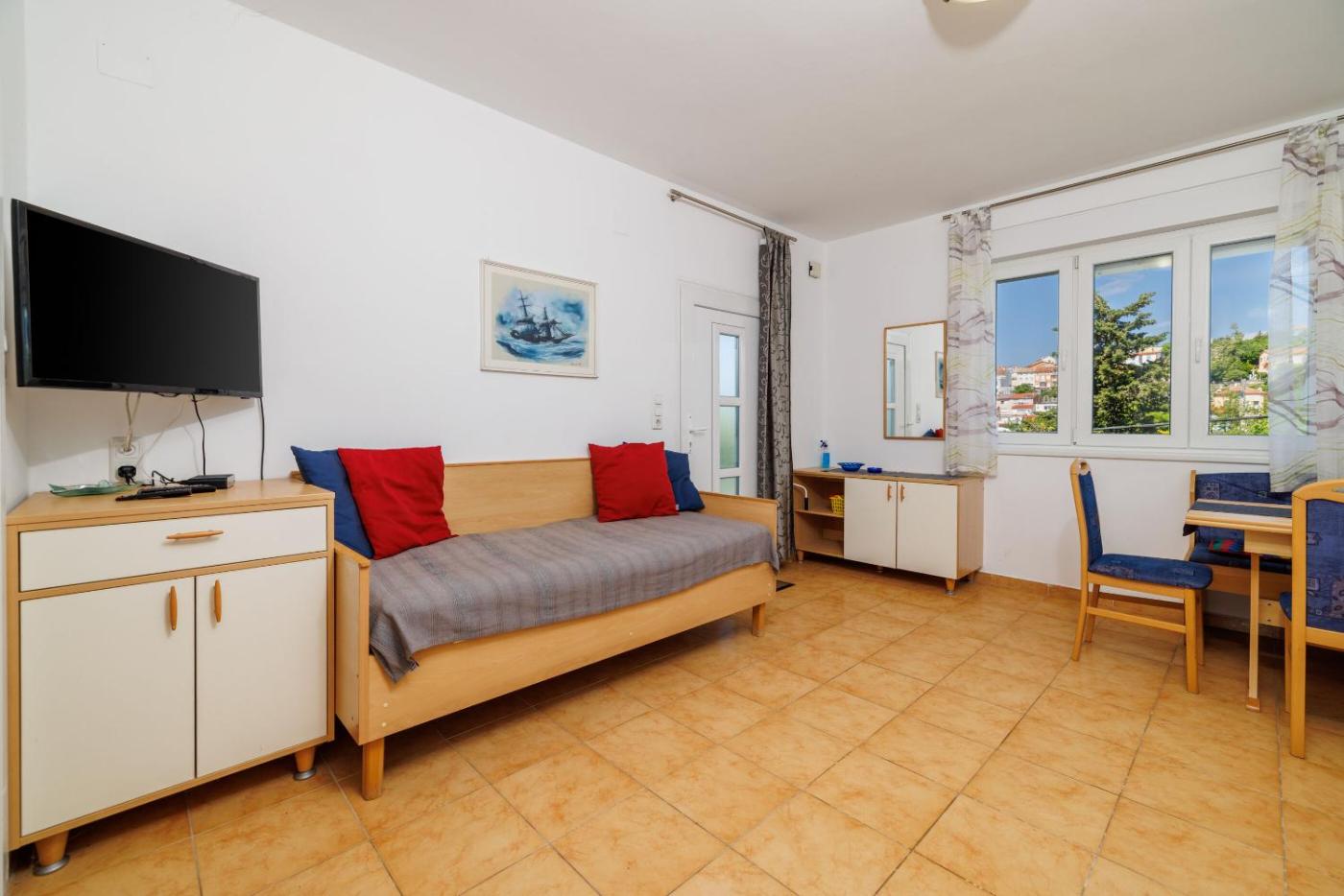 One-Bedroom Apartment. The air-conditioned apartment has 1 bedroom, 1 bathroom and a kitchenette. A kitchenette fitted with a stovetop, a refrigerator and kitchenware is available for cooking and storing food. Boasting a terrace, this apartment also features a coffee machine and a TV with satellite channels. The unit has 1 bed.