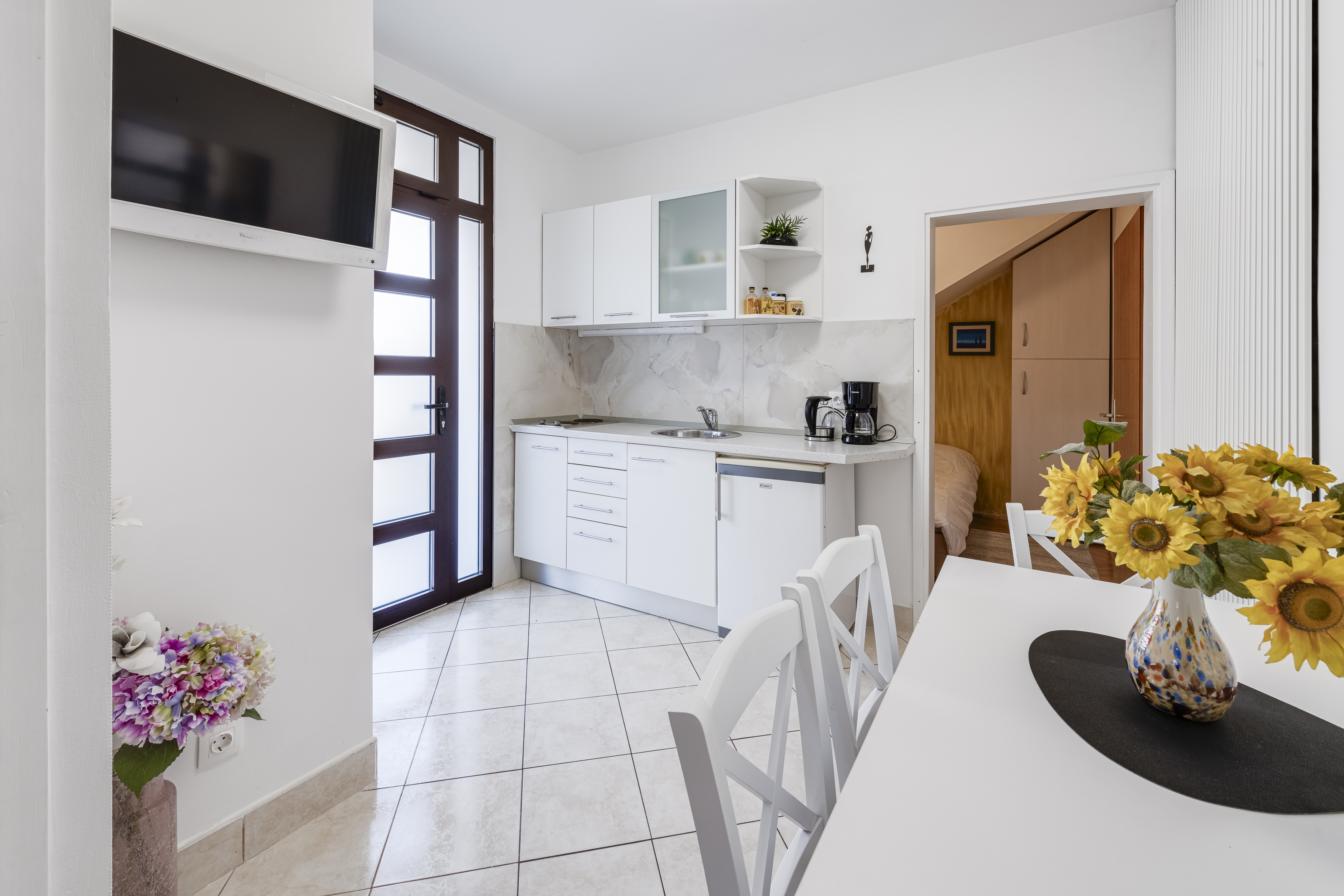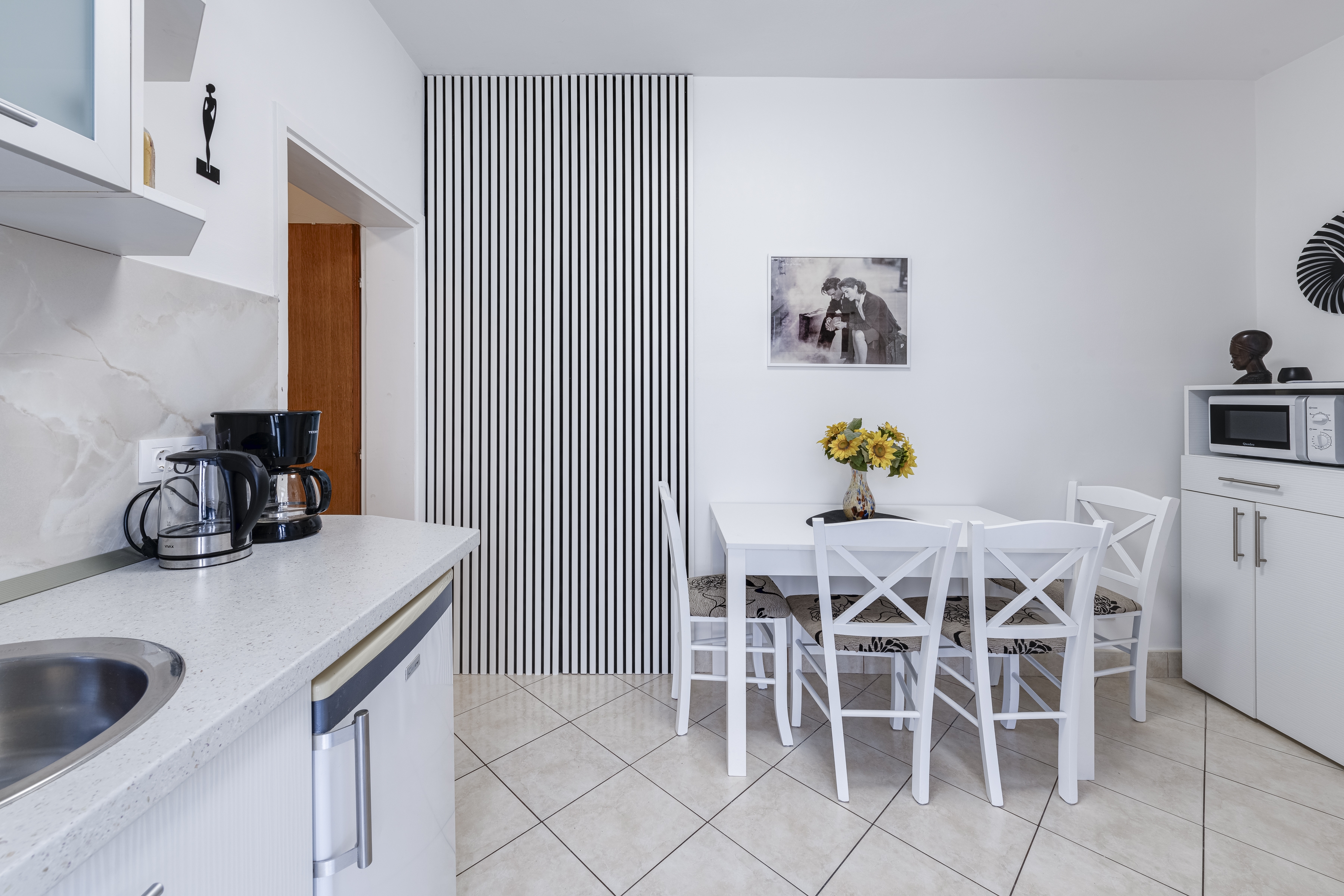 Apartment can accommodate 4 guests. Beds are situated in 2 sleeping rooms, within 30m2. Food can be prepared using barbecue which is shared with other guests too. This accommodation unit welcomes pets at an additional charge. Reserved accommodation unit has a shared terrace. INCLUDED IN THE PRICE: tourist tax, final cleaning, air-conditioning, internet, baby cot, iron, ironing board, hairdryer. OBLIGATORY ADDITIONAL COSTS: short stay fee (surcharge depending on a number of booked nights: 30% - 1, 20% - 2, 10% - 3). OPTIONAL ADDITIONAL COSTS: pets (€5.00 per night). The availability of additional services for your chosen dates of stay, as well as their prices (if none are listed) must be checked ahead of time. Any additional services not shown in the price calculation are payable directly to the property owner and only if used by the visitor. Discounts to the base price: free day 14=13 (for reservations of 14 or more days you get one free day for the stay until 31122026).
