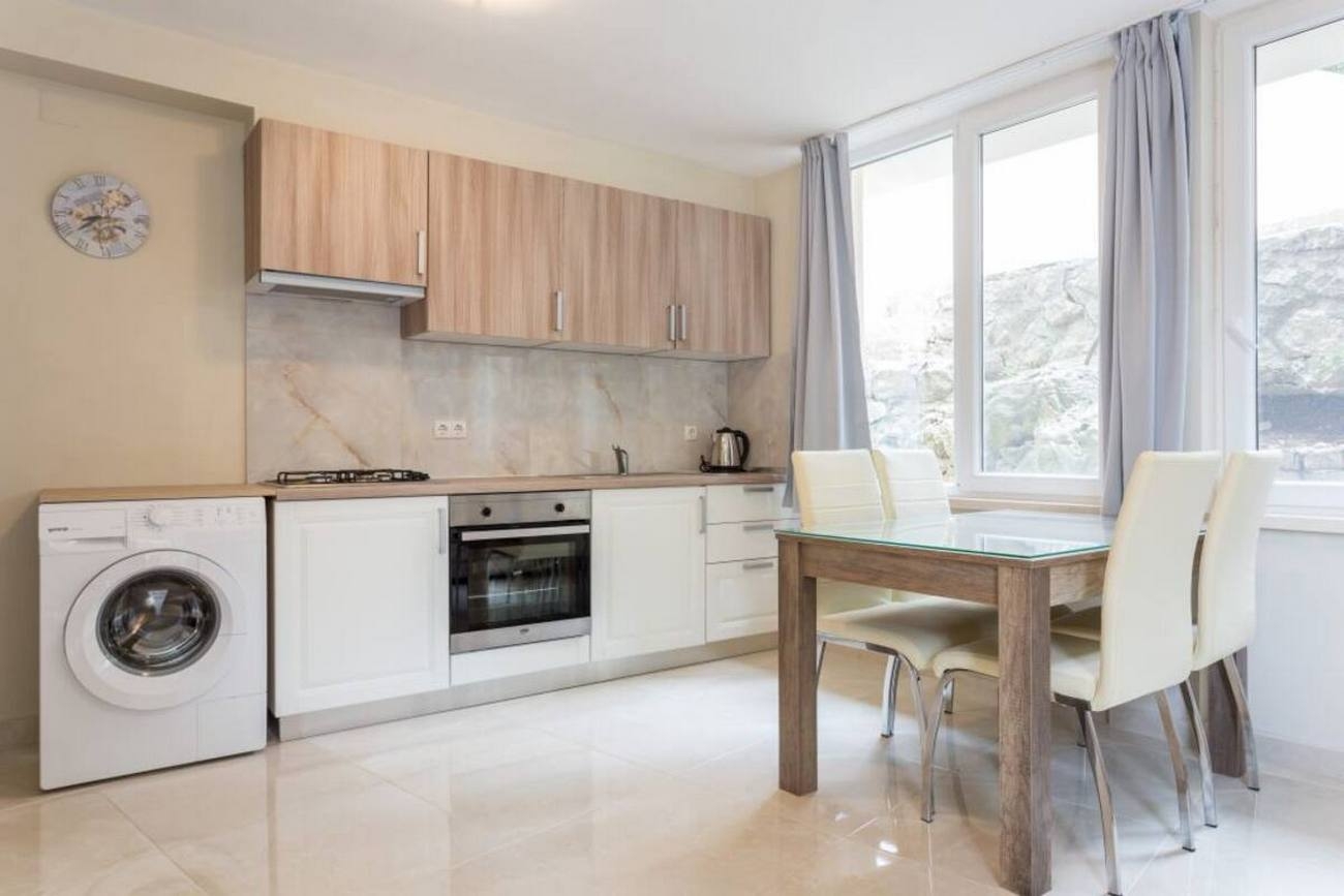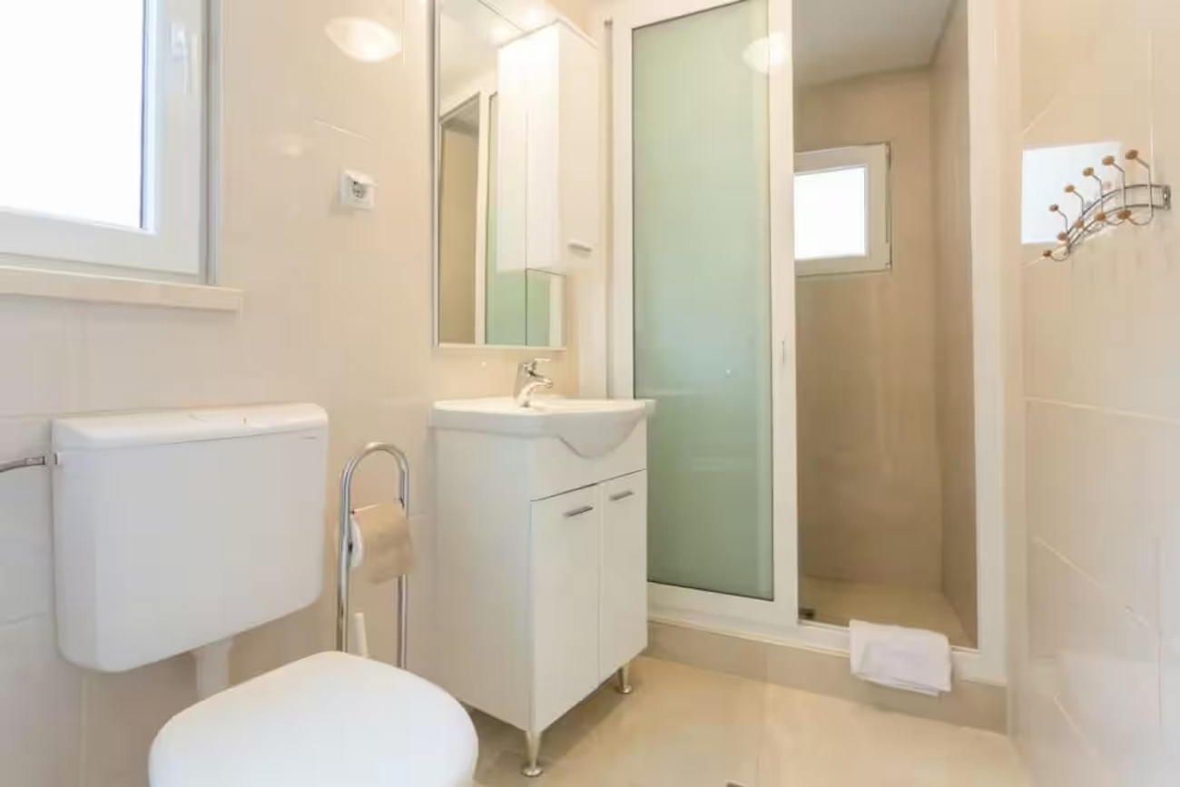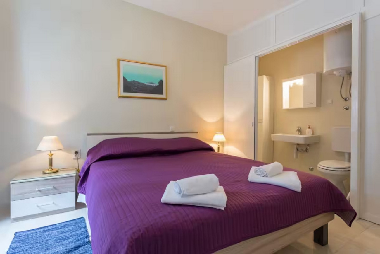 Apartment can accommodate 4 guests. Beds are situated in 2 sleeping rooms, within 52m2. Guests can use a private terrace to enjoy the warm summer evenings. Food can be prepared using barbecue which is shared with other guests too. For the booked accommodation unit the deposit is paid directly to the owner upon check-in (deposit amount is displayed on the website) INCLUDED IN THE PRICE: tourist tax, final cleaning, air-conditioning, parking, internet, baby cot, iron, ironing board, hairdryer. OBLIGATORY ADDITIONAL COSTS: deposit (€200.00 one-time payment), short stay fee (surcharge depending on a number of booked nights: 30% - 1, 20% - 2, 10% - 3). The availability of additional services for your chosen dates of stay, as well as their prices (if none are listed) must be checked ahead of time. Any additional services not shown in the price calculation are payable directly to the property owner and only if used by the visitor.