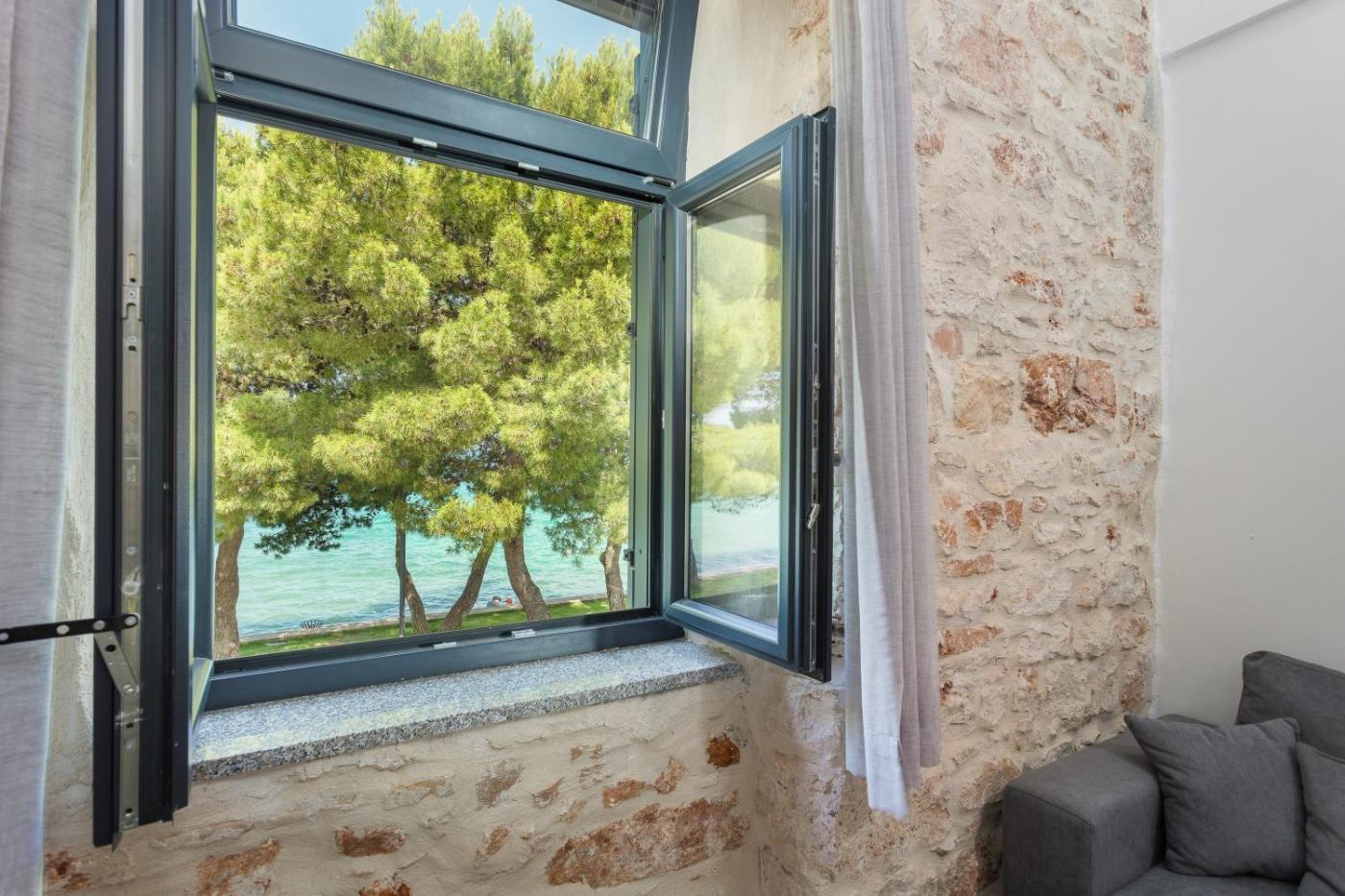 One-Bedroom Apartment. The air-conditioned apartment has 1 bedroom and 1 bathroom with a shower and a hairdryer. The apartments kitchen is available for cooking and storing food. The apartment features a flat-screen TV, a washing machine, a wardrobe, a safe deposit box as well as sea views. The unit has 1 bed.