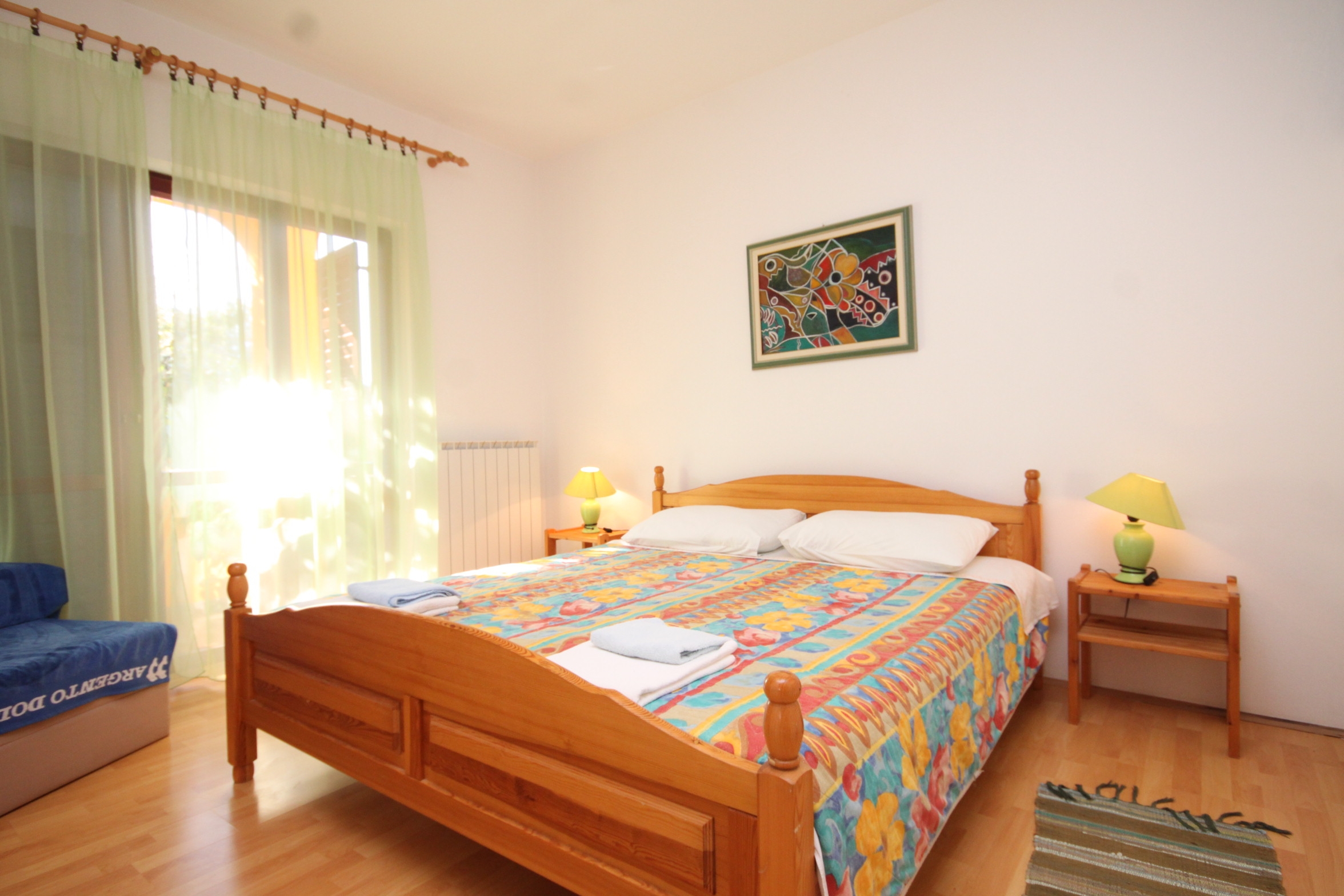 Apartment can accommodate 4 guests. Beds are situated in 2 sleeping rooms, within 44m2. Guests can use a private terrace to enjoy the warm summer evenings. Food can be prepared using barbecue which is shared with other guests too. This accommodation unit welcomes pets at an additional charge. INCLUDED IN THE PRICE: tourist tax, final cleaning, air-conditioning, parking, internet, baby cot. OPTIONAL ADDITIONAL COSTS: central heating (€10.00 per night), pets (€8.00 per night). The availability of additional services for your chosen dates of stay, as well as their prices (if none are listed) must be checked ahead of time. Any additional services not shown in the price calculation are payable directly to the property owner and only if used by the visitor.