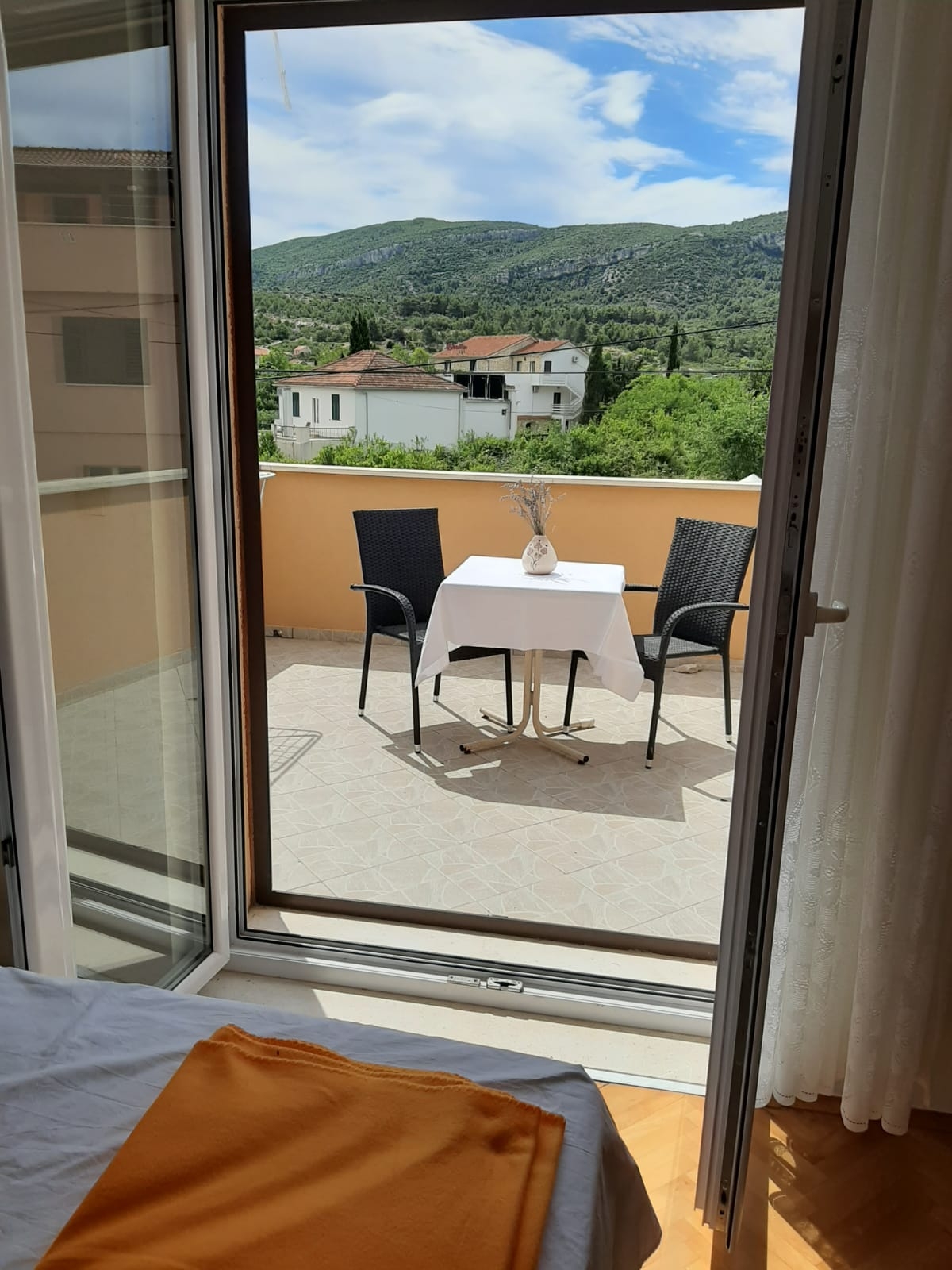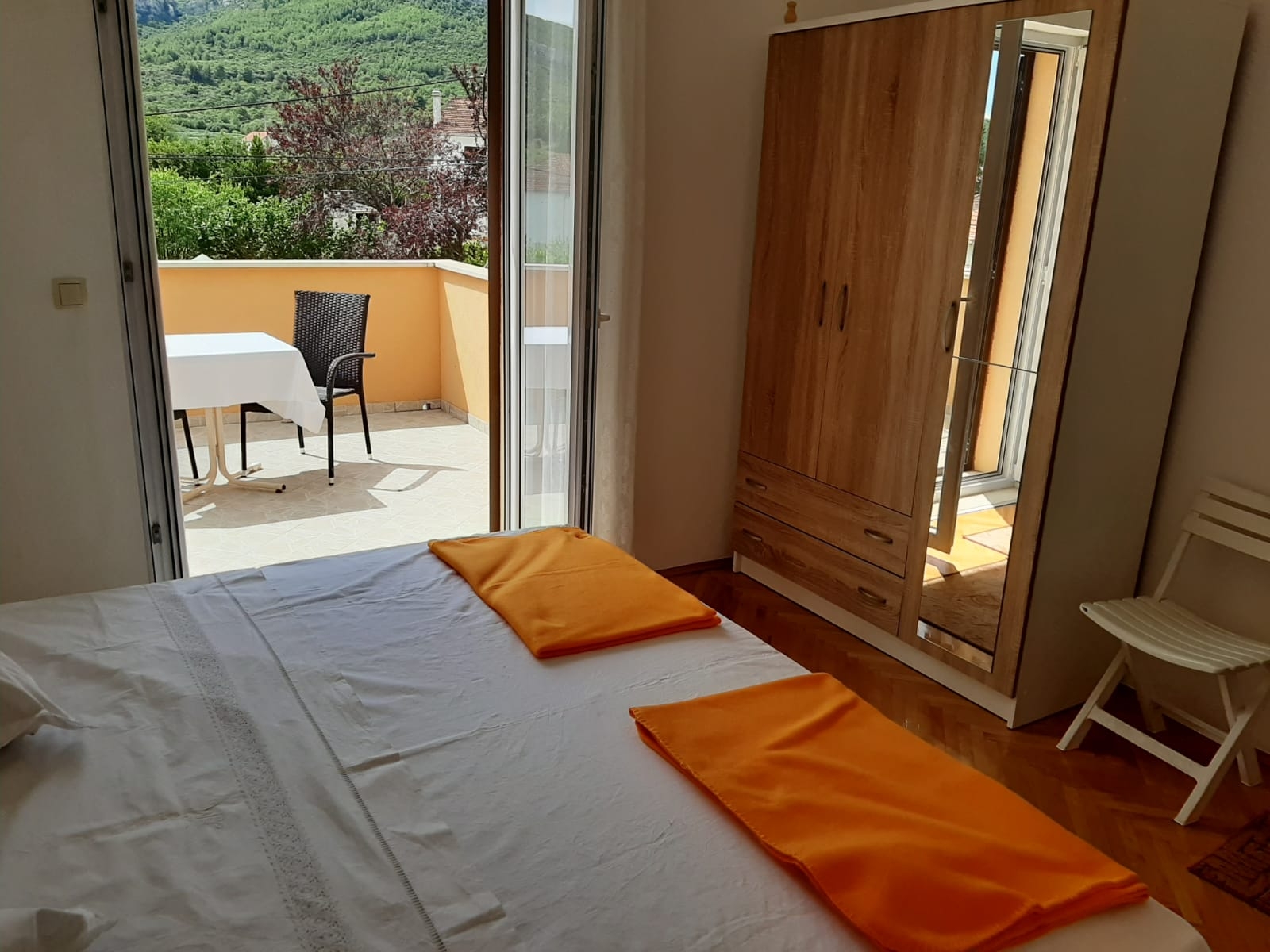 Room can accommodate 2 guests. Beds are situated in 1 sleeping rooms, within 17m2. Guests can use a private terrace to enjoy the warm summer evenings. Food can be prepared using barbecue which is shared with other guests too. Reserved accommodation unit is a room with its own bathroom and there is no usage of kitchen. INCLUDED IN THE PRICE: tourist tax, final cleaning, parking, internet, iron, ironing board, hairdryer, portable barbecue, sunchairs. OBLIGATORY ADDITIONAL COSTS: short stay fee (surcharge depending on a number of booked nights: 30% - 1, 20% - 2, 10% - 3). OPTIONAL ADDITIONAL COSTS: laundry (€3.00 washing). The availability of additional services for your chosen dates of stay, as well as their prices (if none are listed) must be checked ahead of time. Any additional services not shown in the price calculation are payable directly to the property owner and only if used by the visitor.