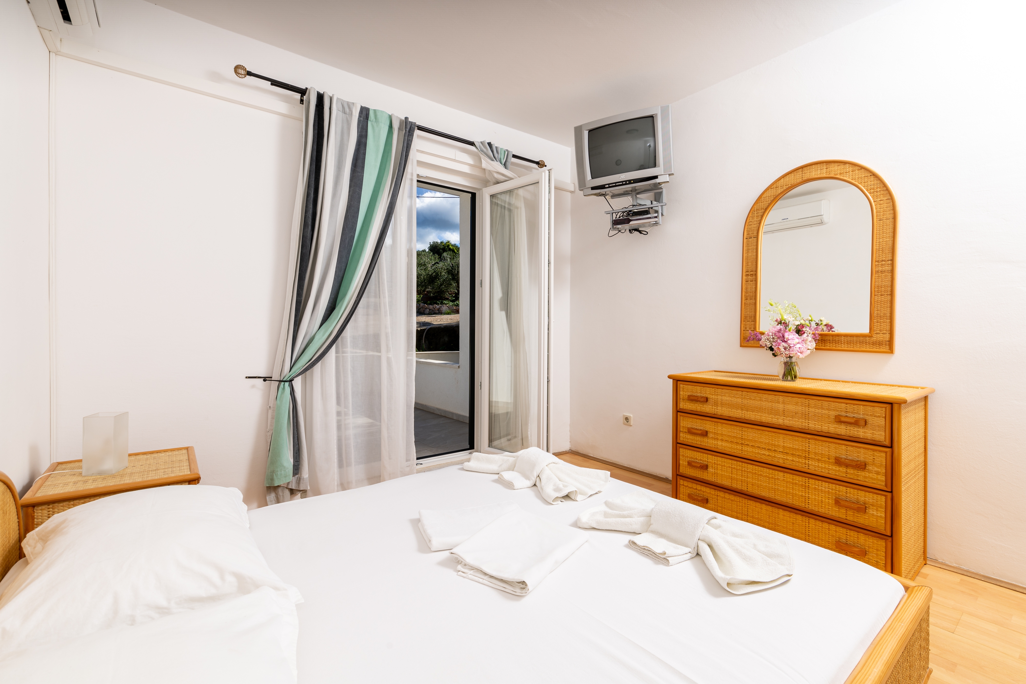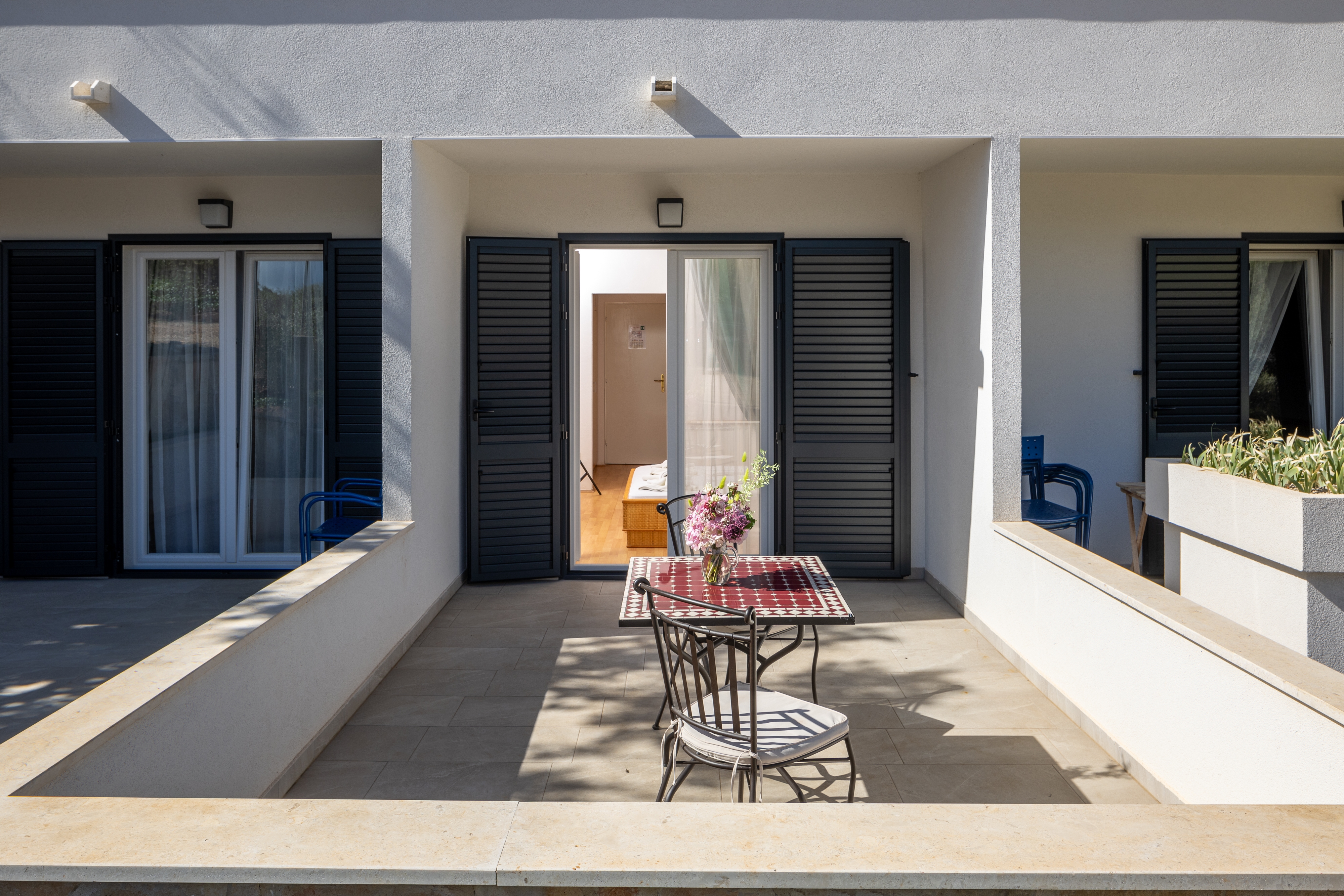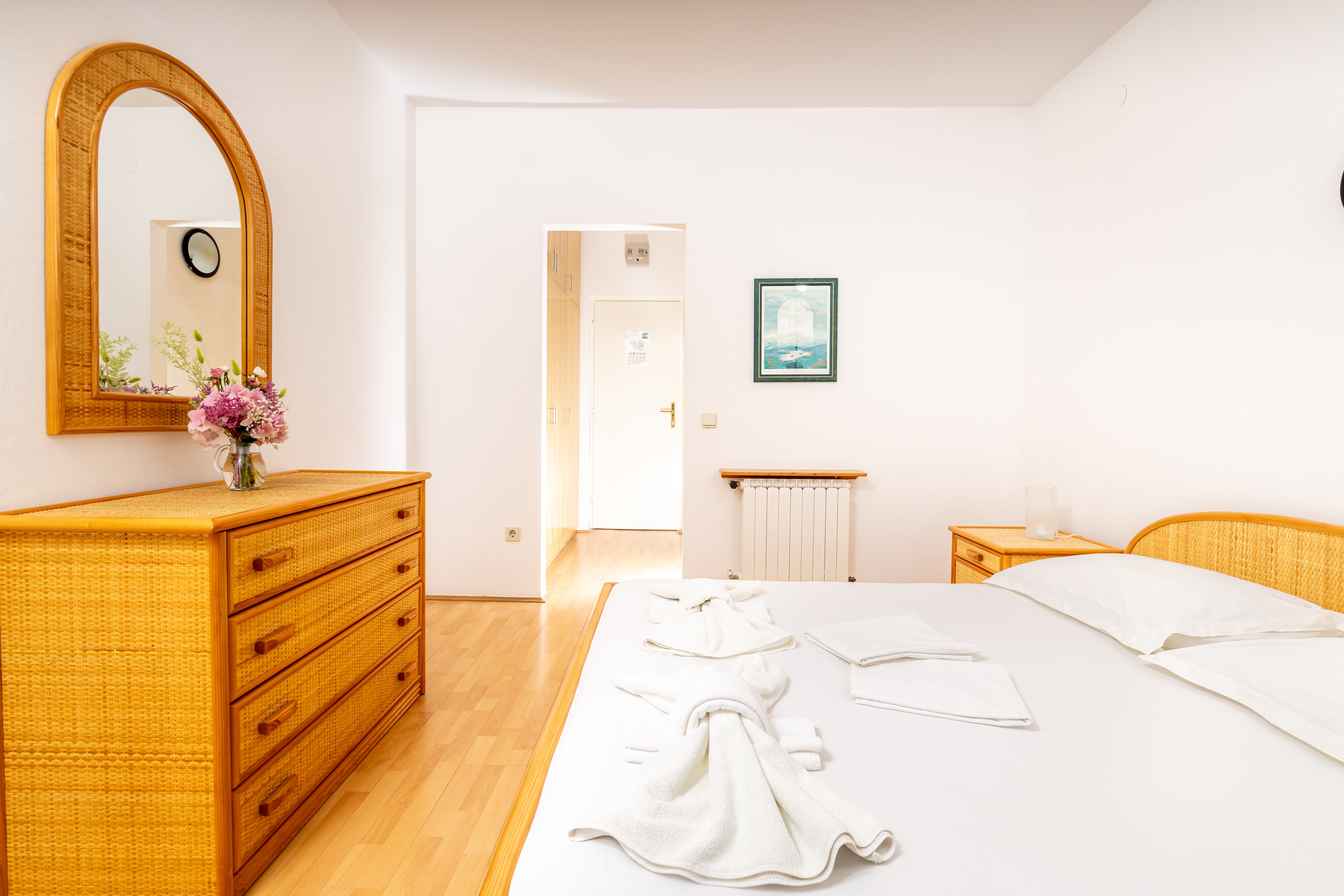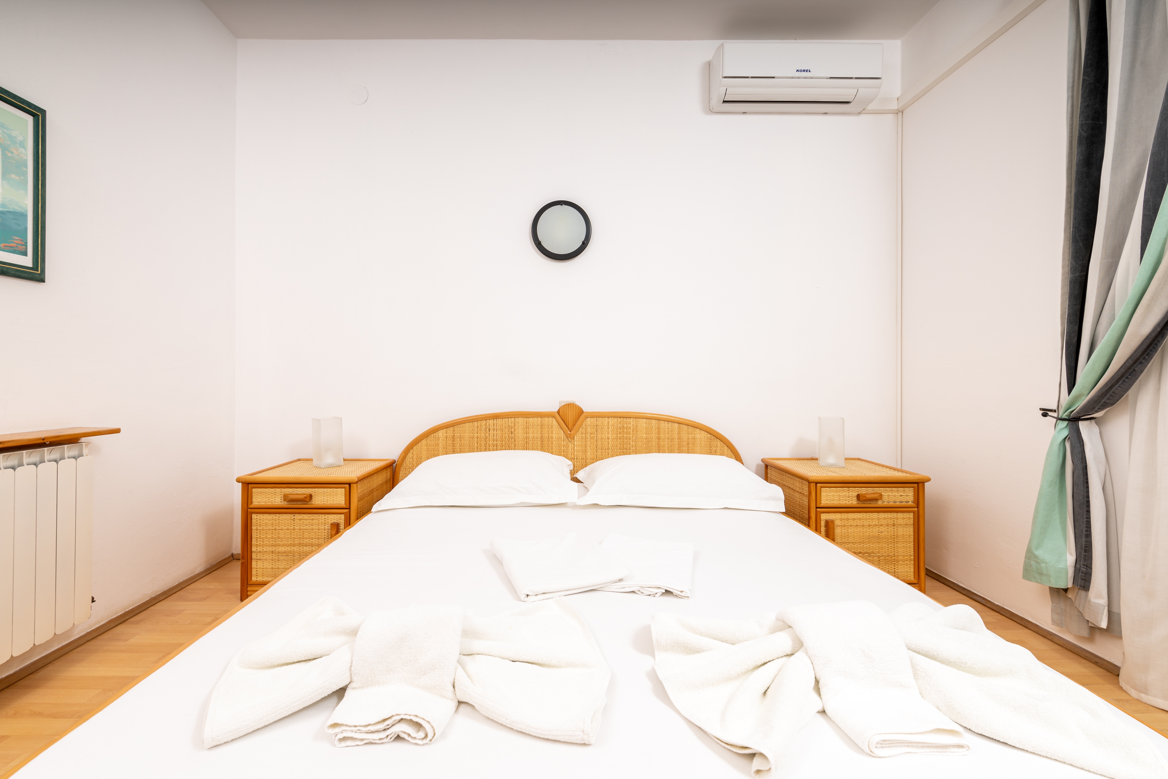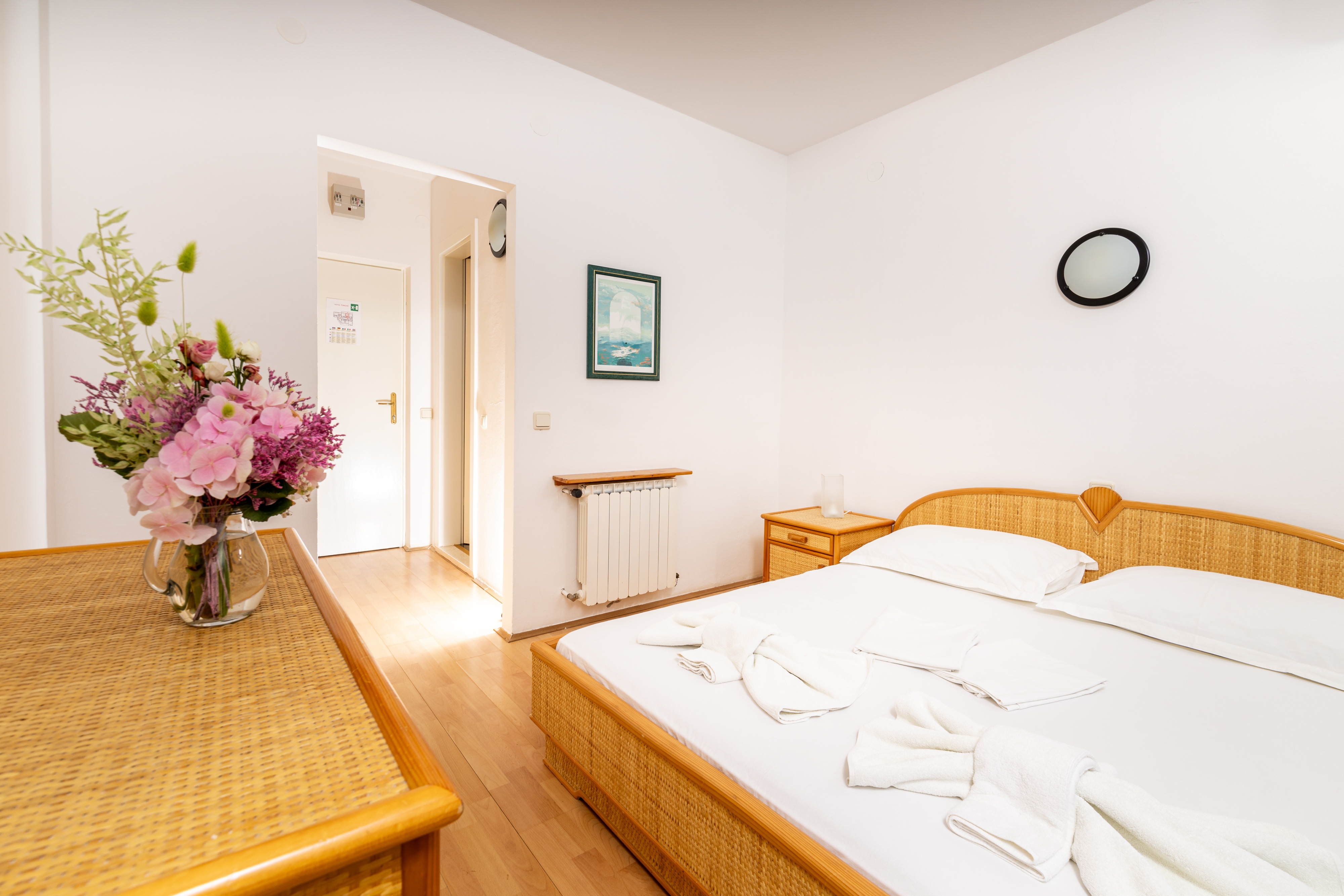 Room can accommodate 2 guests. Beds are situated in 1 sleeping rooms, within 15m2. Guests can use a private terrace to enjoy the warm summer evenings. The room offers the sea view. This accommodation unit welcomes pets at an additional charge. Reserved accommodation unit is a room with its own bathroom and there is no usage of kitchen. INCLUDED IN THE PRICE: half-board, final cleaning, air-conditioning, parking, internet, baby cot, hairdryer. OBLIGATORY ADDITIONAL COSTS: tourist tax (adults €0.93 - €1.80 nightperson, discount for children aged 12 - 17). OPTIONAL ADDITIONAL COSTS: boat (€65.00 per night), pets (€13.00 per night). The availability of additional services for your chosen dates of stay, as well as their prices (if none are listed) must be checked ahead of time. Any additional services not shown in the price calculation are payable directly to the property owner and only if used by the visitor.