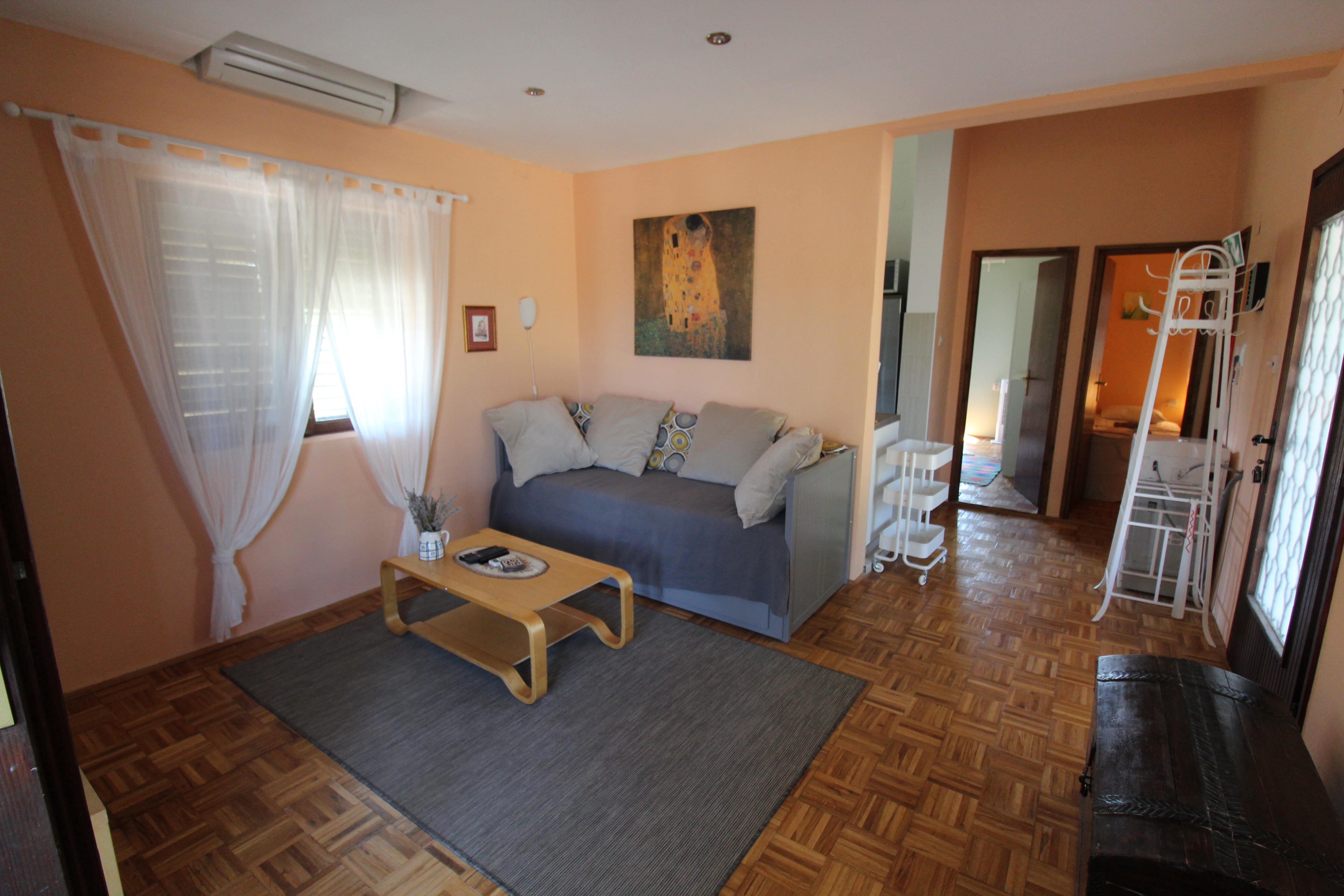 House can accommodate 6 guests. Beds are situated in 2 sleeping rooms, but also in the living room, within 48m2. Guests can use a private terrace to enjoy the warm summer evenings. For full enjoyment and relaxation there is a private barbecue for this accommodation guests only. This accommodation unit welcomes pets at no additional costs. INCLUDED IN THE PRICE: tourist tax, final cleaning, air-conditioning, parking, internet, pets, iron, ironing board, hairdryer, portable barbecue, sunshade. The availability of additional services for your chosen dates of stay, as well as their prices (if none are listed) must be checked ahead of time. Any additional services not shown in the price calculation are payable directly to the property owner and only if used by the visitor. Discounts to the base price: free day 14=13 (for reservations of 14 or more days you get one free day for the stay until 31122026).