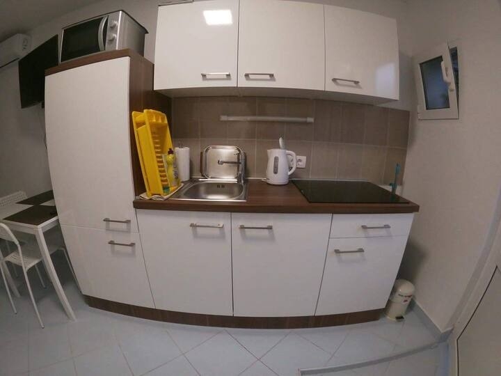 Apartment can accommodate 3 guests. Beds are situated in 1 sleeping rooms, but also in the living room, within 39m2. Guests can use a private terrace to enjoy the warm summer evenings. Food can be prepared using barbecue which is shared with other guests too. INCLUDED IN THE PRICE: tourist tax, final cleaning, air-conditioning, parking, internet, baby cot, additional bed, iron, ironing board, hairdryer, portable barbecue. The availability of additional services for your chosen dates of stay, as well as their prices (if none are listed) must be checked ahead of time. Any additional services not shown in the price calculation are payable directly to the property owner and only if used by the visitor.