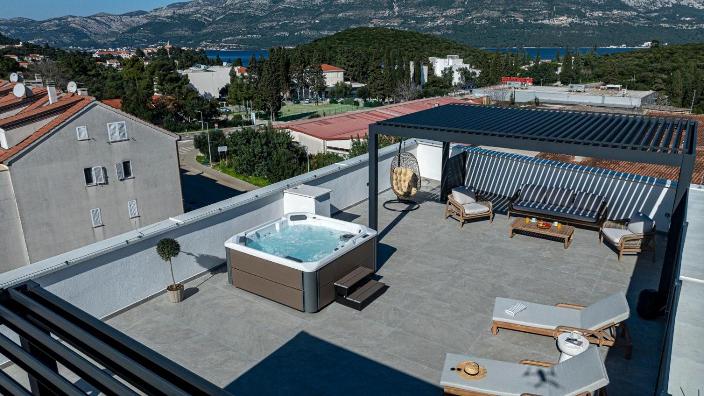 Set in KorÄula and only 500 metres from Beach Port 9, Penthouse apartment Optimum offers accommodation with mountain views, free WiFi and free private parking. This apartment features air-conditioned accommodation with a balcony. The apartment features a hot tub and a lift.