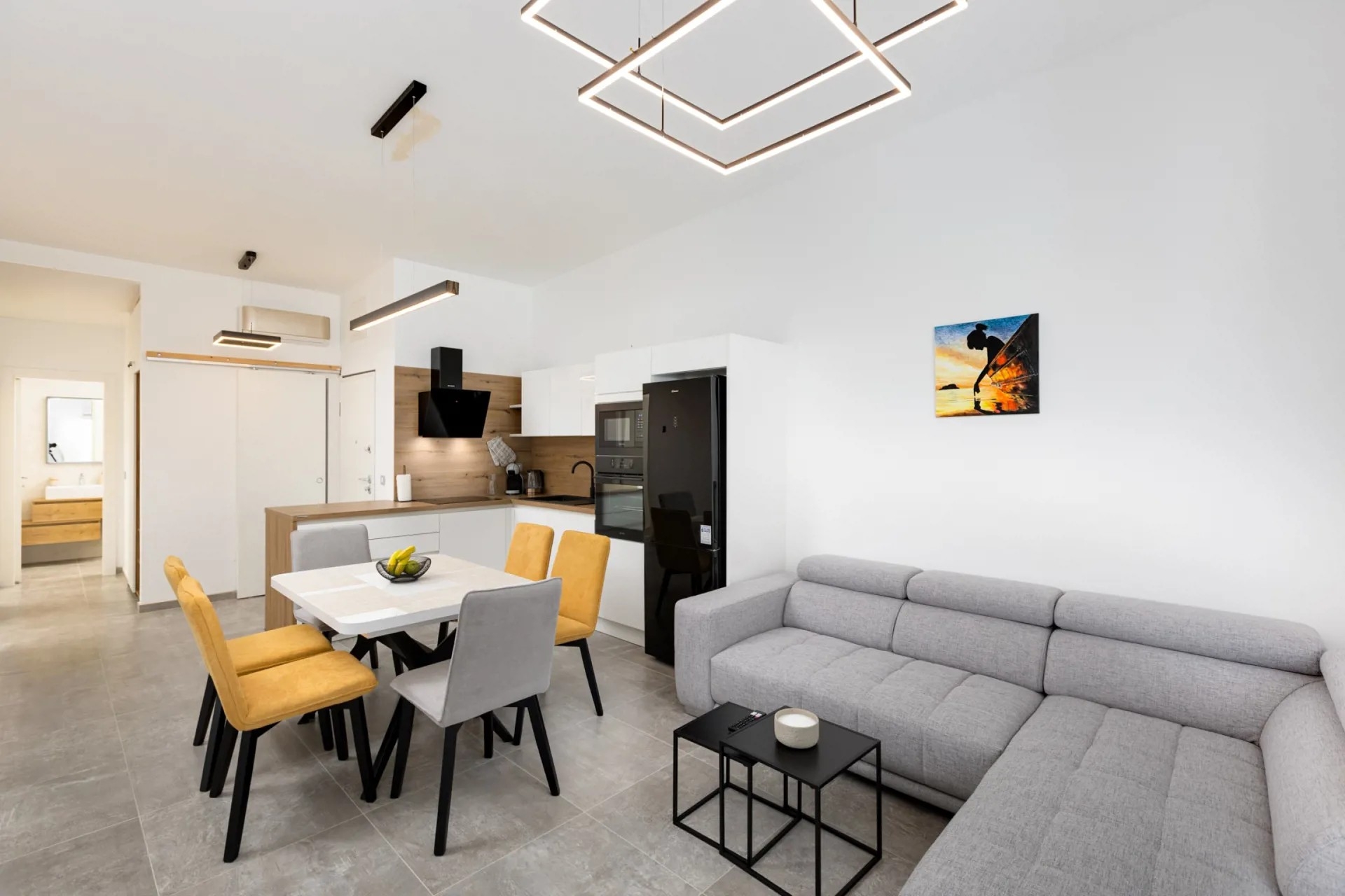 Apartment can accommodate 4 guests. Beds are situated in 2 sleeping rooms, within 70m2. Guests can use a private terrace to enjoy the warm summer evenings. INCLUDED IN THE PRICE: tourist tax, final cleaning, air-conditioning, parking, internet, baby cot, hairdryer. OBLIGATORY ADDITIONAL COSTS: short stay fee (surcharge depending on a number of booked nights: 30% - 1, 20% - 2, 10% - 3). The availability of additional services for your chosen dates of stay, as well as their prices (if none are listed) must be checked ahead of time. Any additional services not shown in the price calculation are payable directly to the property owner and only if used by the visitor.