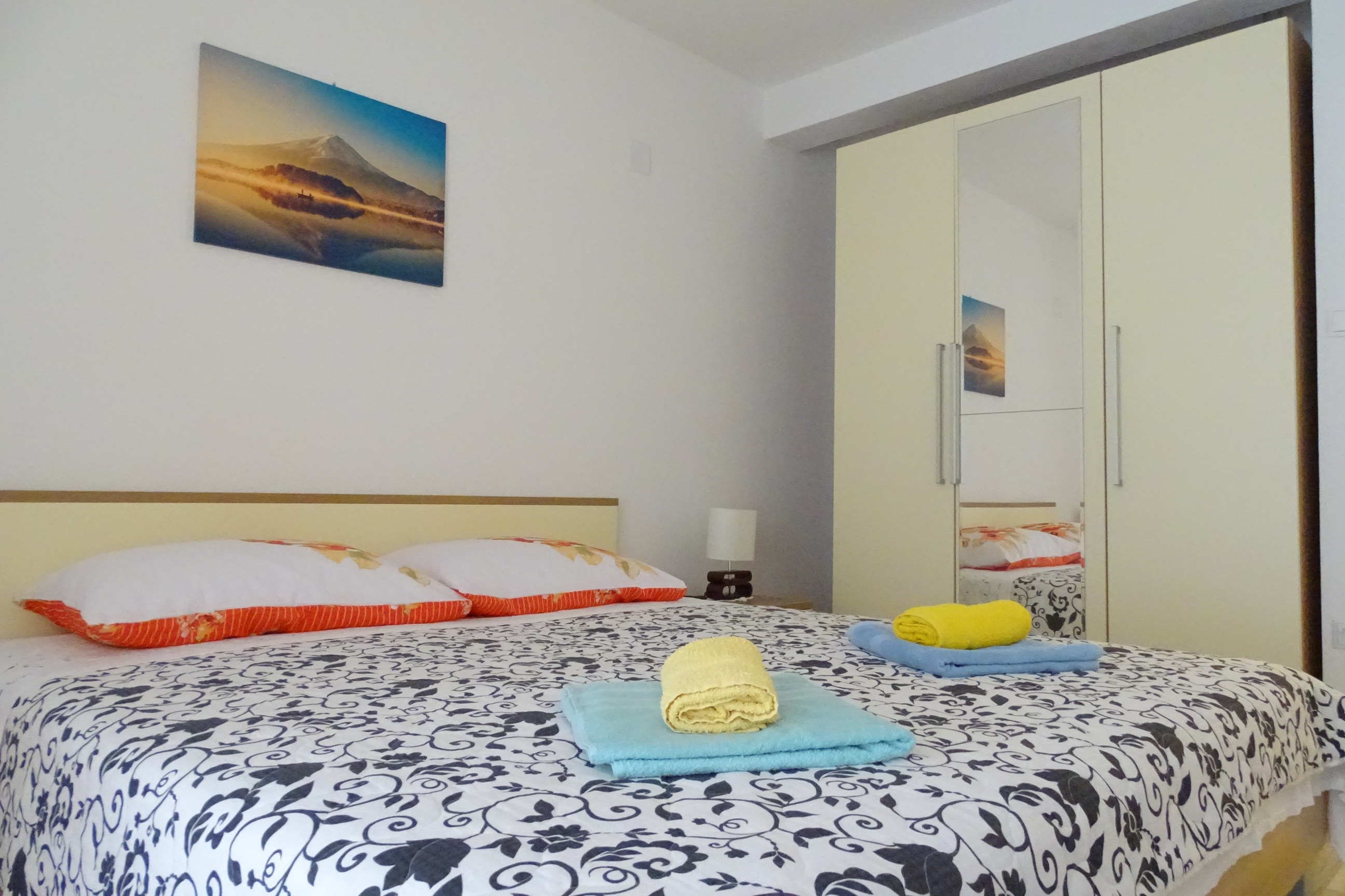 Apartment can accommodate 6 guests. Beds are situated in 2 sleeping rooms, but also in the living room, within 46m2. Guests can use a private balcony to enjoy the warm summer evenings. The apartment offers the sea view. INCLUDED IN THE PRICE: tourist tax, final cleaning, air-conditioning, parking, internet, baby cot, iron, hairdryer. OBLIGATORY ADDITIONAL COSTS: short stay fee (surcharge depending on a number of booked nights: 30% - 1, 20% - 2, 10% - 3). OPTIONAL ADDITIONAL COSTS: laundry (€8.00 washing), additional bed (€10.00 per night). The availability of additional services for your chosen dates of stay, as well as their prices (if none are listed) must be checked ahead of time. Any additional services not shown in the price calculation are payable directly to the property owner and only if used by the visitor.
