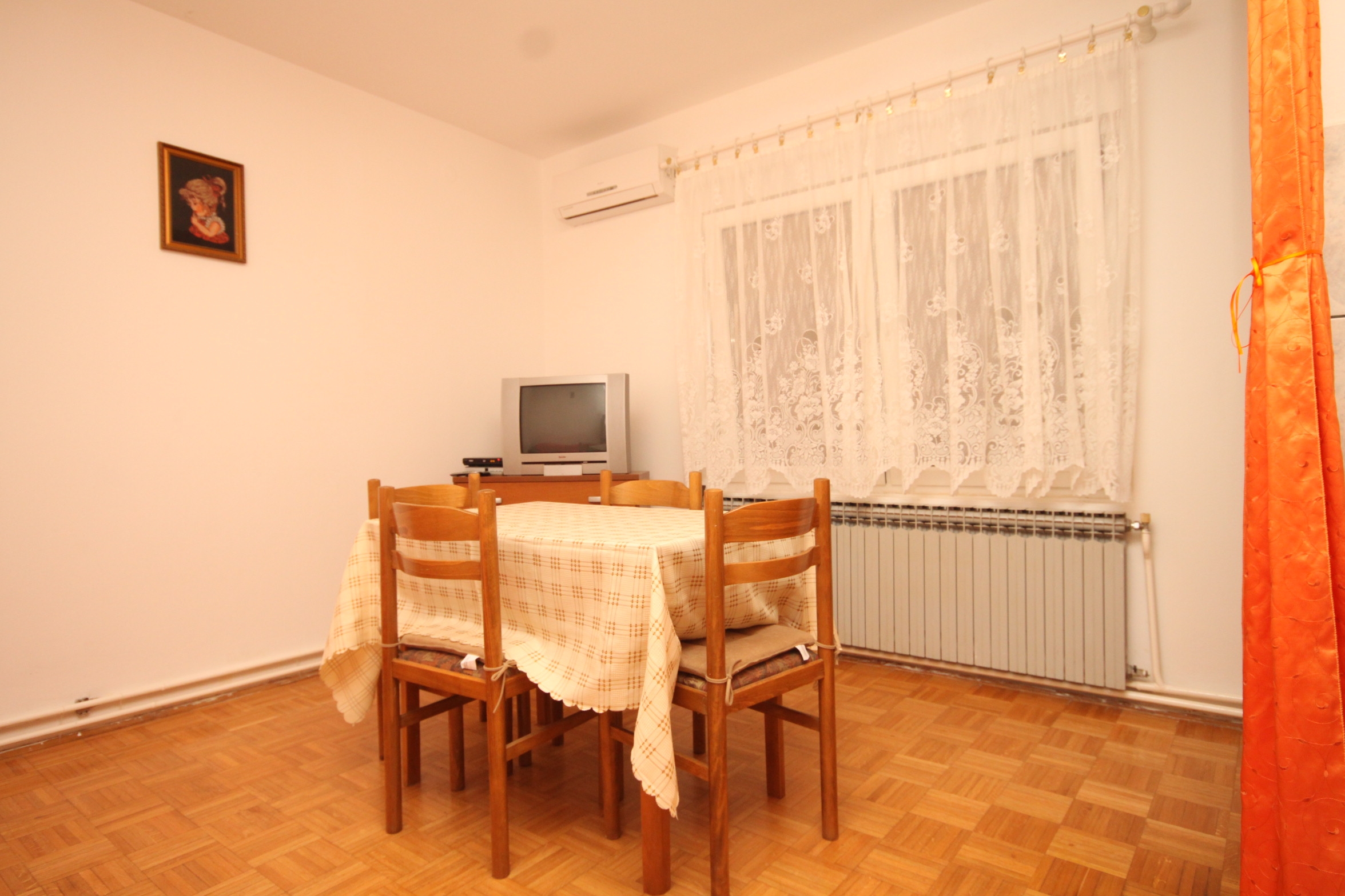 Apartment can accommodate 3 guests. Beds are situated in 1 sleeping rooms, but also in the dining room, within 38m2. Guests can use a private terrace to enjoy the warm summer evenings. Food can be prepared using barbecue which is shared with other guests too. This accommodation unit welcomes pets at an additional charge. INCLUDED IN THE PRICE: tourist tax, final cleaning, parking, internet, iron, ironing board, hairdryer, portable barbecue. OBLIGATORY ADDITIONAL COSTS: short stay fee (surcharge depending on a number of booked nights: 30% - 1, 20% - 2, 10% - 3). OPTIONAL ADDITIONAL COSTS: air-conditioning (€5.00 per night), pets (€10.00 per night). The availability of additional services for your chosen dates of stay, as well as their prices (if none are listed) must be checked ahead of time. Any additional services not shown in the price calculation are payable directly to the property owner and only if used by the visitor. Discounts to the base price: free day 14=13 (for reservations of 14 or more days you get one free day for the stay until 31122026).