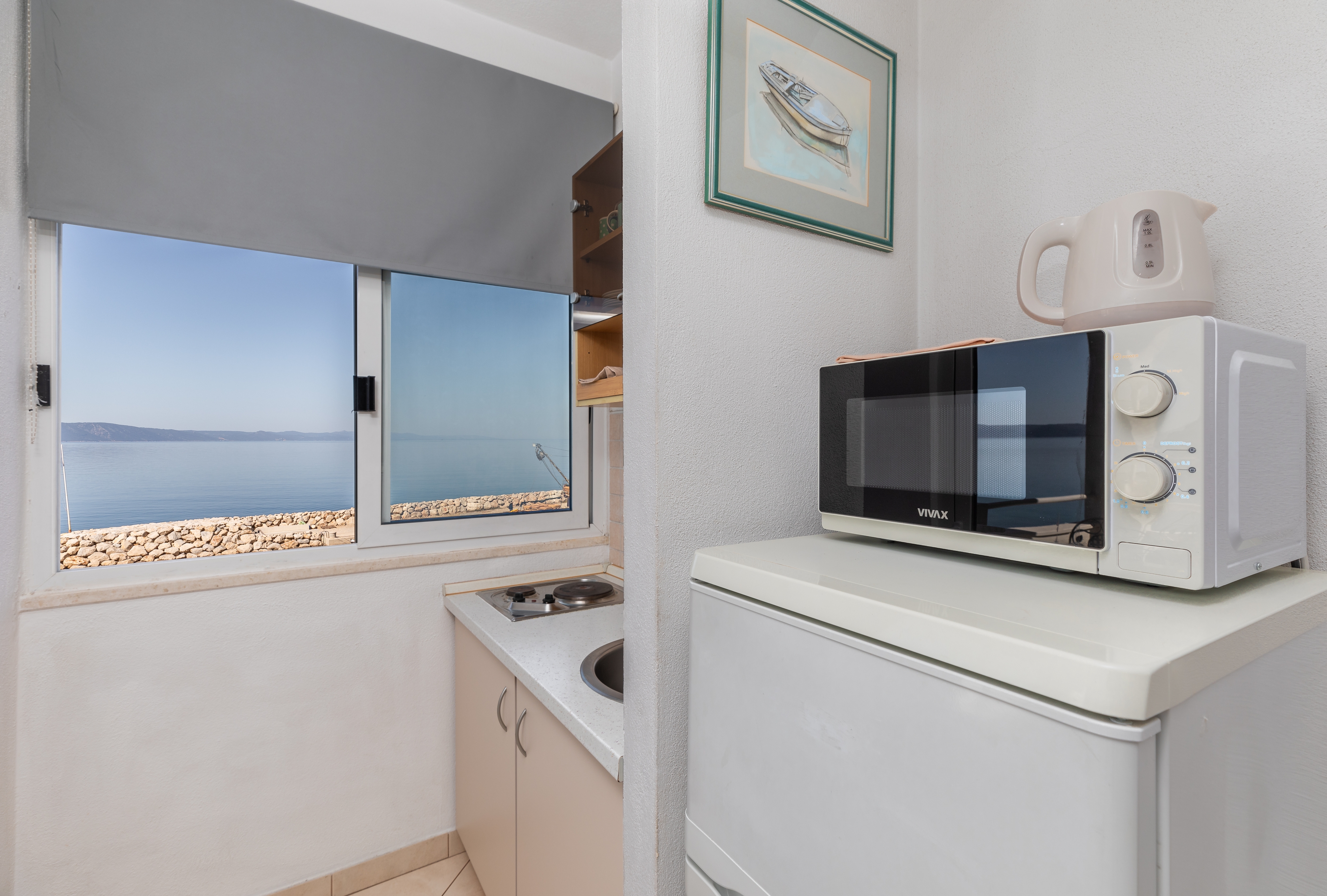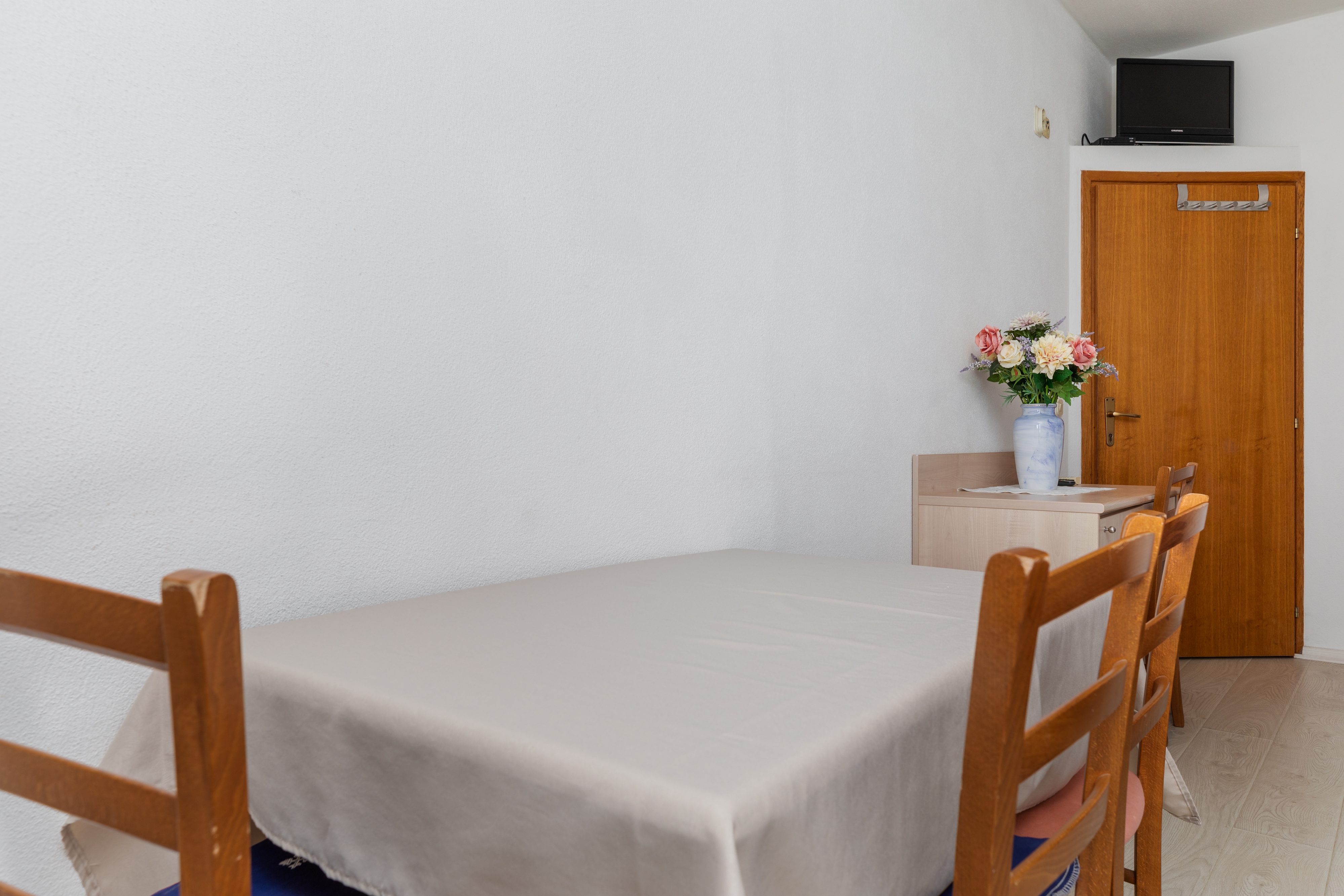 Apartment can accommodate 3 guests. Beds are situated in 1 sleeping rooms, but also in the living room, within 29m2. Guests can use a private terrace to enjoy the warm summer evenings. The apartment offers the sea view. Food can be prepared using barbecue which is shared with other guests too. This accommodation unit welcomes pets at an additional charge. INCLUDED IN THE PRICE: tourist tax, final cleaning, internet, baby cot, iron, ironing board, hairdryer. OBLIGATORY ADDITIONAL COSTS: short stay fee (surcharge depending on a number of booked nights: 30% - 1, 20% - 2, 10% - 3). OPTIONAL ADDITIONAL COSTS: air-conditioning (€6.00 per night), pets (€6.00 per night). The availability of additional services for your chosen dates of stay, as well as their prices (if none are listed) must be checked ahead of time. Any additional services not shown in the price calculation are payable directly to the property owner and only if used by the visitor. Discounts to the base price: free day 14=13 (for reservations of 14 or more days you get one free day for the stay until 31122026).