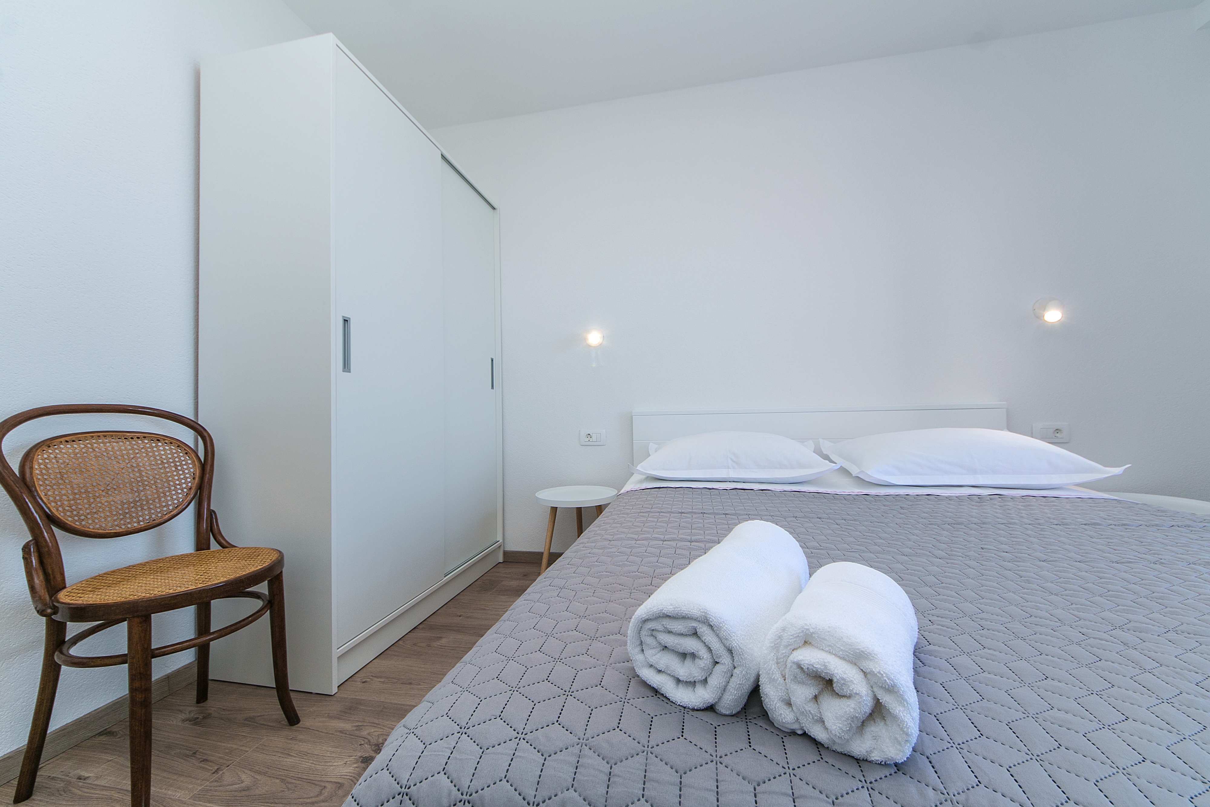 Apartment can accommodate 4 guests. Beds are situated in 2 sleeping rooms, within 46m2. Guests can use a private balcony to enjoy the warm summer evenings. The apartment offers the sea view. Food can be prepared using barbecue which is shared with other guests too. INCLUDED IN THE PRICE: tourist tax, final cleaning, air-conditioning, parking, internet, laundry, baby cot, iron, hairdryer. The availability of additional services for your chosen dates of stay, as well as their prices (if none are listed) must be checked ahead of time. Any additional services not shown in the price calculation are payable directly to the property owner and only if used by the visitor.