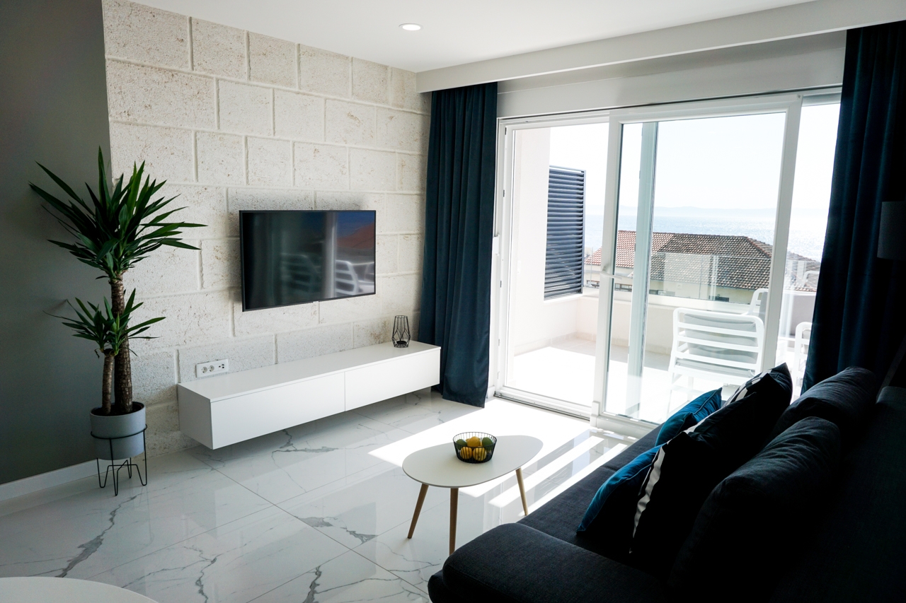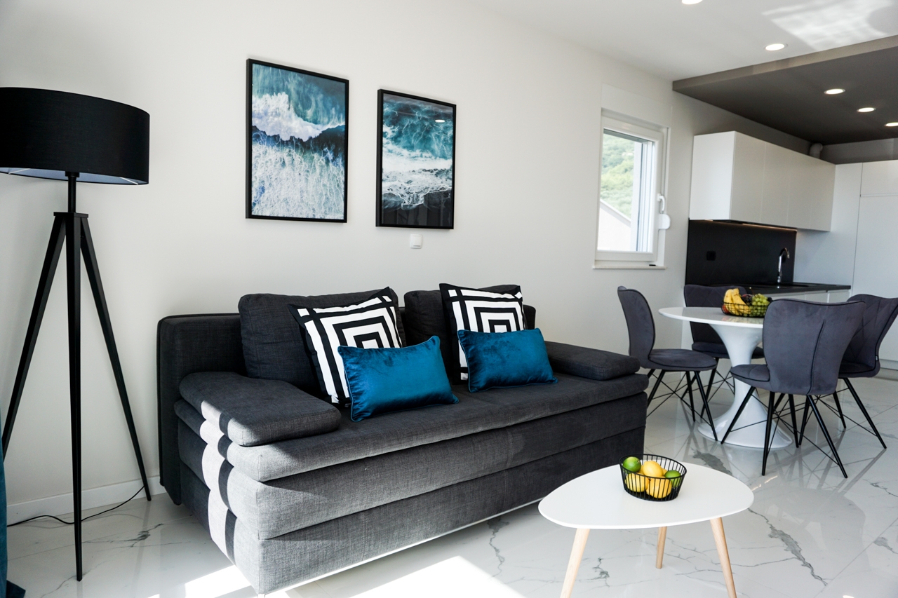 Apartment can accommodate 6 guests. Beds are situated in 2 sleeping rooms, but also in the living room, within 62m2. Guests can use a private terrace to enjoy the warm summer evenings. The apartment offers the sea view. INCLUDED IN THE PRICE: tourist tax, final cleaning, air-conditioning, parking, internet, baby cot, iron, ironing board, hairdryer. The availability of additional services for your chosen dates of stay, as well as their prices (if none are listed) must be checked ahead of time. Any additional services not shown in the price calculation are payable directly to the property owner and only if used by the visitor.