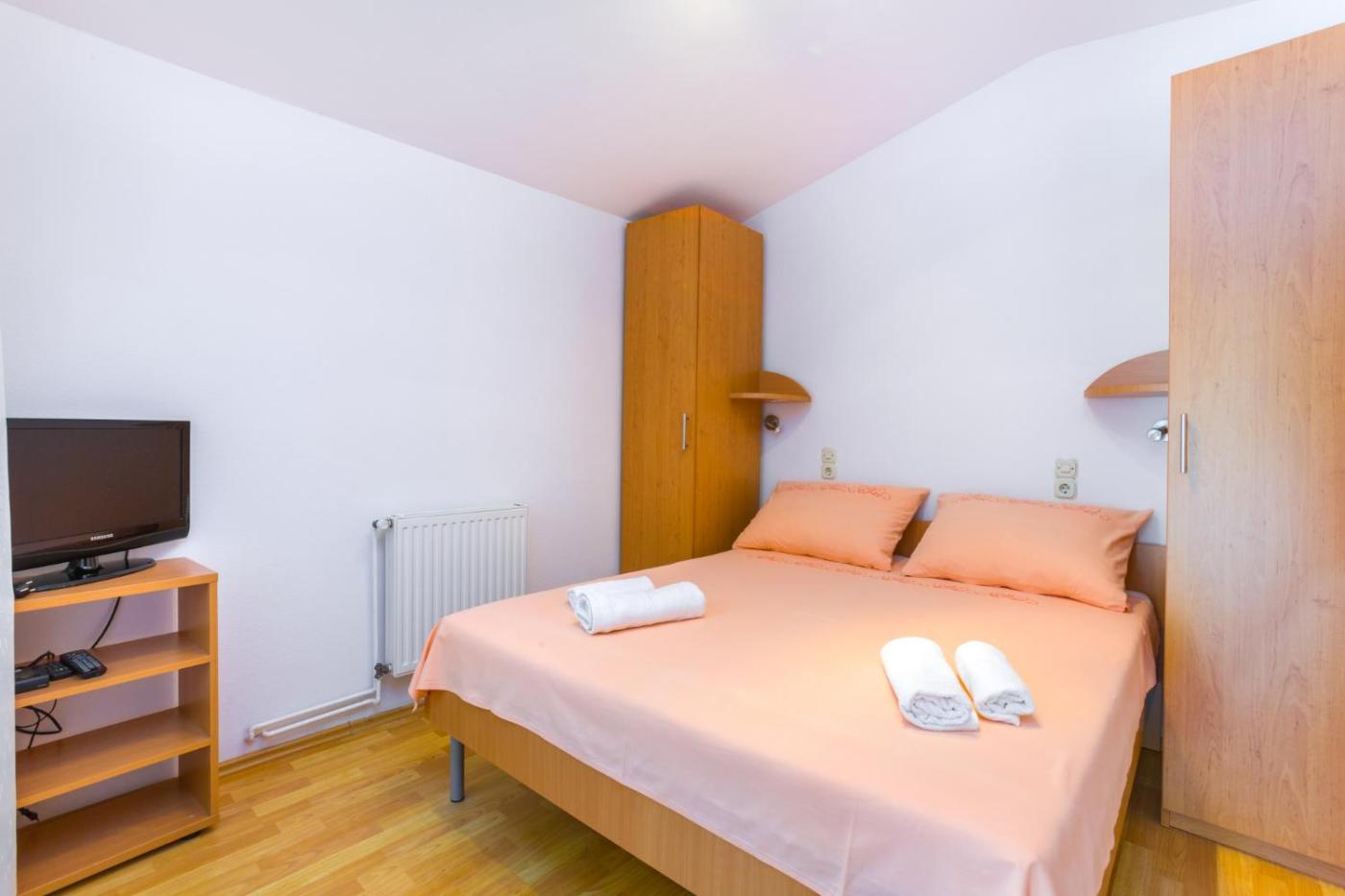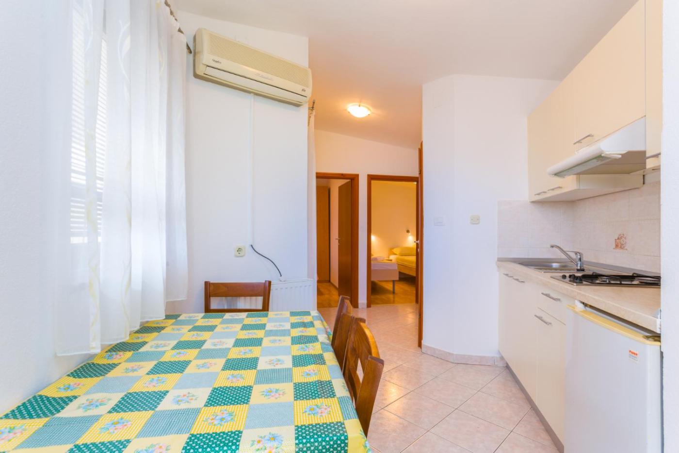 Two-Bedroom Apartment. Featuring a private entrance, this air-conditioned apartment consists of 2 bedrooms and 1 bathroom with a shower. Guests will find a stovetop, a refrigerator and kitchenware in the kitchenette. The apartment also offers a barbecue. Boasting a terrace with ancourtyard view, this apartment also provides a coffee machine and a flat-screen TV with cable channels. The unit offers 3 beds.