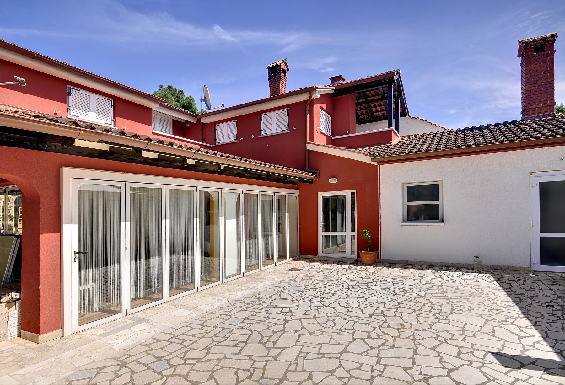 House 22764 in the town of Medulin, Medulin - Istria has accommodation units of type Apartment (3) and is 500 m away from the sea. The nearest beach to this accommodation is a pebble beach. As the house is dividedseveral apartments, other guests are likely to be present during your holiday. The hosts reside in the house. The house owner is under no obligation to accept additional persons and pets that were not stated in the reservation request and it is necessary to report them in advance.AMENITIES Courtyard (500m2, Sitting area), Parking lot (Number of parking spaces: 7, Distance from the house: In the courtyard), Pool: shared, Dimensions: 13m x 6m x 1.08m, Type of water: Freshwater, Barbecue: shared, WiFi Internet, Hairdryer LOCATION AND ACCESS Facility is situated near a local road Local road between the property and the beach Car access possible: Yes, Macadam road: 20 m The facility is situated in relatively quiet surroundings DISTANCES Sea: 500 m Beach: 900 m Center: 600 m Shop: 200 m Pharmacy: 650 m Exchange office: 20 m ATMBank machine: 130 m Tourist info: 10 m Airport: 4 km Ferry port: 12 km Bus station: 11 km Gas station: 750 m