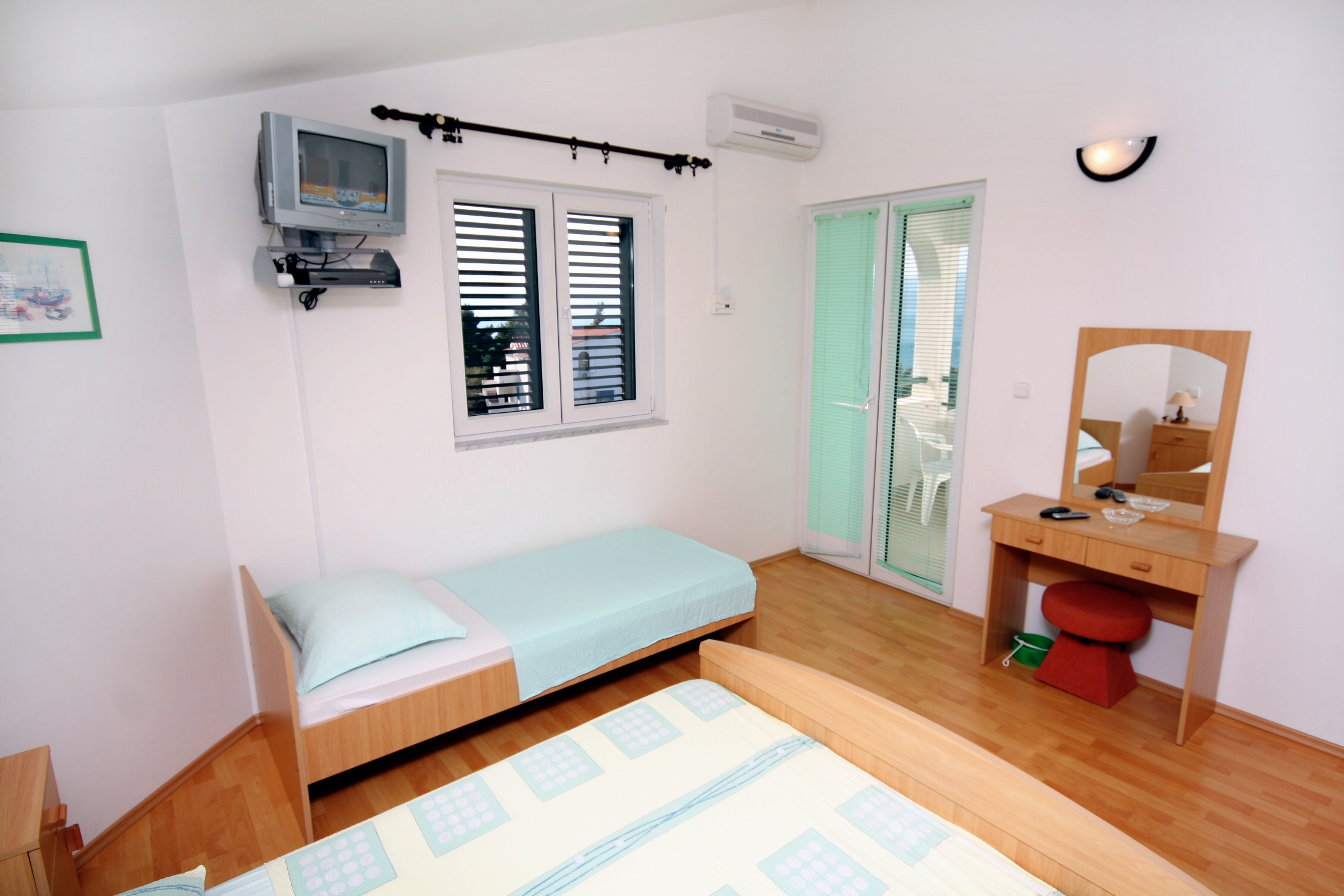 Studio flat can accommodate 3 guests. Beds are situated in 1 sleeping rooms, within 21m2. Guests can use a private terrace to enjoy the warm summer evenings. The studio offers the sea view. Food can be prepared using barbecue which is shared with other guests too. INCLUDED IN THE PRICE: tourist tax, final cleaning, air-conditioning, parking, internet, laundry, iron, ironing board, hairdryer. OBLIGATORY ADDITIONAL COSTS: short stay fee (surcharge depending on a number of booked nights: 30% - 1, 20% - 2, 10% - 3). OPTIONAL ADDITIONAL COSTS: additional bed (€5.00 per night). The availability of additional services for your chosen dates of stay, as well as their prices (if none are listed) must be checked ahead of time. Any additional services not shown in the price calculation are payable directly to the property owner and only if used by the visitor.