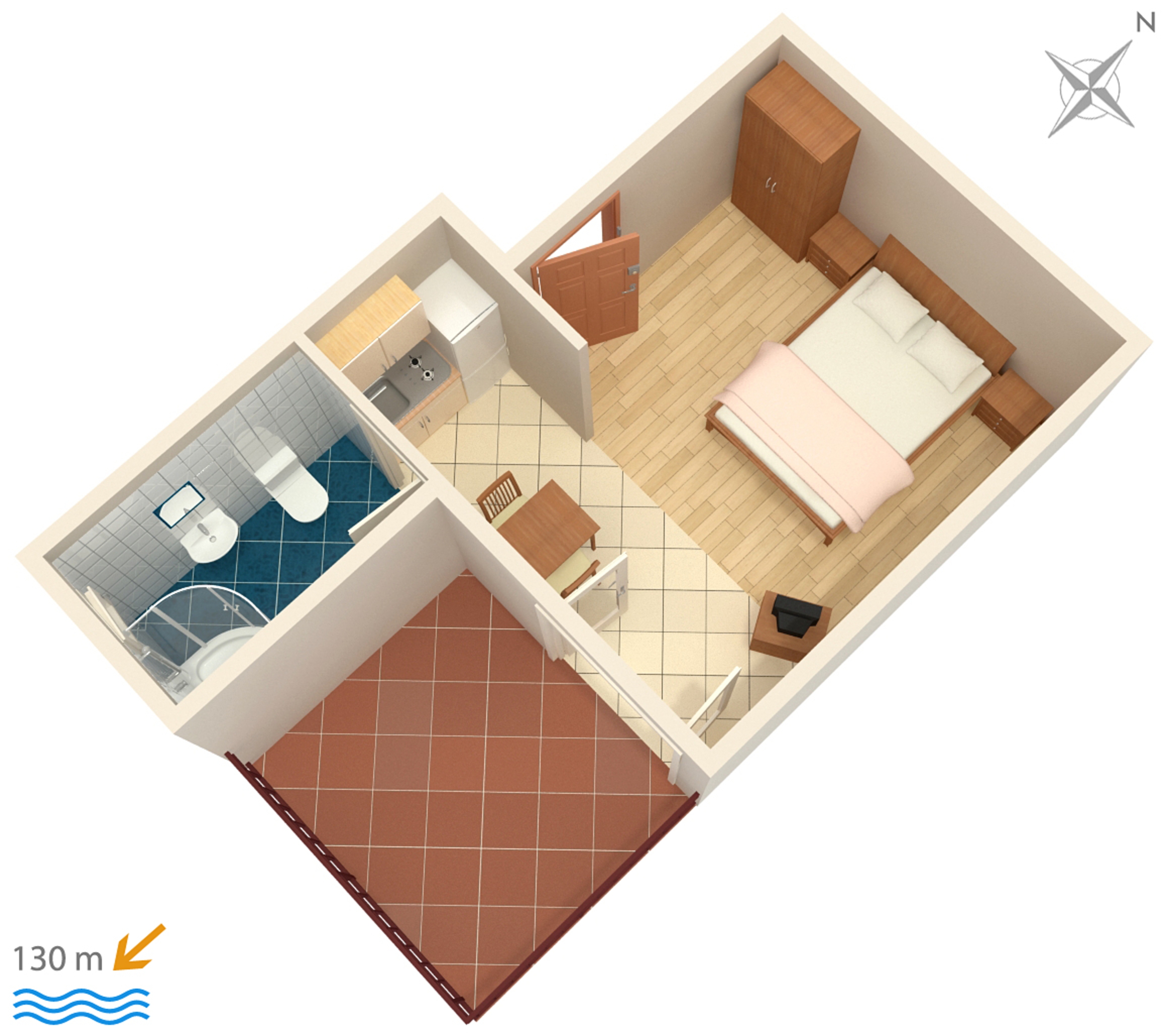 Studio flat can accommodate 3 guests. Beds are situated in 1 sleeping rooms, but also in the dining room, within 23m2. Guests can use a private terrace to enjoy the warm summer evenings. The studio offers the sea view. Food can be prepared using barbecue which is shared with other guests too. INCLUDED IN THE PRICE: tourist tax, final cleaning, air-conditioning, parking, internet, additional bed. OBLIGATORY ADDITIONAL COSTS: short stay fee (surcharge depending on a number of booked nights: 30% - 1, 20% - 2, 10% - 3). The availability of additional services for your chosen dates of stay, as well as their prices (if none are listed) must be checked ahead of time. Any additional services not shown in the price calculation are payable directly to the property owner and only if used by the visitor.