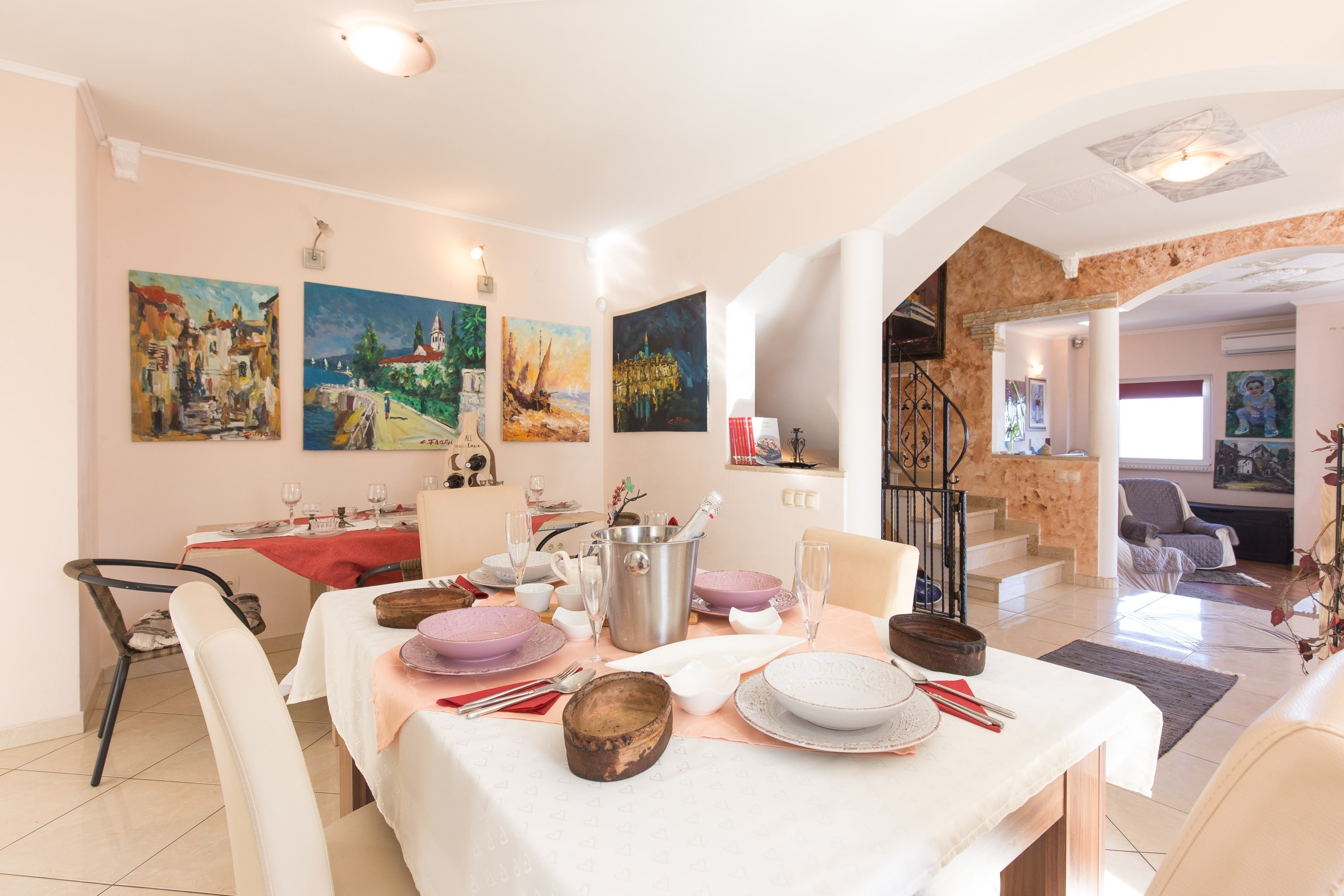 House can accommodate 12 guests. Beds are situated in 5 sleeping rooms, within 234m2. Guests can use a private terrace to enjoy the warm summer evenings. The house offers the sea view. For full enjoyment and relaxation there is a private barbecue for this accommodation guests only. During stay, there is a private pool for relaxation and pleasure. This accommodation unit welcomes pets at no additional costs. INCLUDED IN THE PRICE: tourist tax, final cleaning, air-conditioning, central heating, pool, parking, internet, pets, iron, ironing board, hairdryer. OBLIGATORY ADDITIONAL COSTS: short stay fee (surcharge depending on a number of booked nights: 30% - 1, 20% - 2, 10% - 3). OPTIONAL ADDITIONAL COSTS: boat (€250.00 per night). The availability of additional services for your chosen dates of stay, as well as their prices (if none are listed) must be checked ahead of time. Any additional services not shown in the price calculation are payable directly to the property owner and only if used by the visitor. Discounts to the base price: free day 14=13 (for reservations of 14 or more days you get one free day for the stay until 31122026).