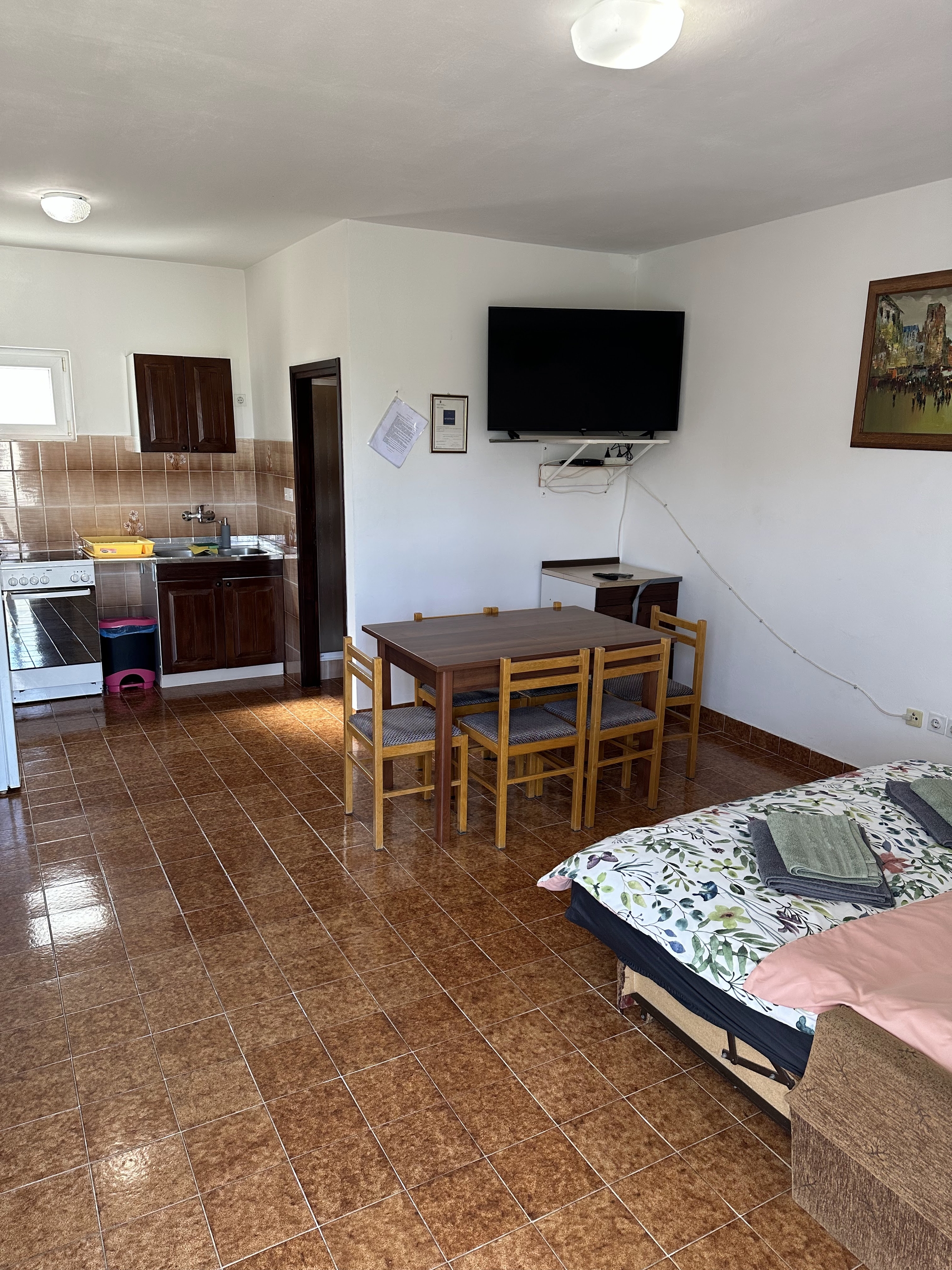 Apartment can accommodate 6 guests. Beds are situated in 2 sleeping rooms, but also in the living room, within 47m2. Guests can use a private terrace to enjoy the warm summer evenings. Food can be prepared using barbecue which is shared with other guests too. INCLUDED IN THE PRICE: tourist tax, final cleaning, air-conditioning, parking, internet, hairdryer. The availability of additional services for your chosen dates of stay, as well as their prices (if none are listed) must be checked ahead of time. Any additional services not shown in the price calculation are payable directly to the property owner and only if used by the visitor.