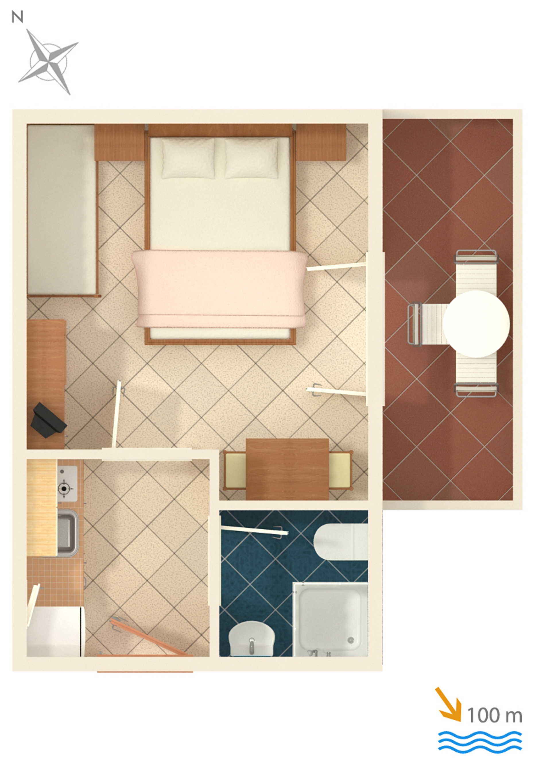 Apartment can accommodate 2 guests. Beds are situated in 1 sleeping rooms, within 20m2. Guests can use a private terrace to enjoy the warm summer evenings. Food can be prepared using barbecue which is shared with other guests too. INCLUDED IN THE PRICE: tourist tax, final cleaning, air-conditioning, parking, internet, baby cot, iron, ironing board, hairdryer. OBLIGATORY ADDITIONAL COSTS: short stay fee (surcharge depending on a number of booked nights: 30% - 1, 20% - 2, 10% - 3). OPTIONAL ADDITIONAL COSTS: laundry (€5.00 washing). The availability of additional services for your chosen dates of stay, as well as their prices (if none are listed) must be checked ahead of time. Any additional services not shown in the price calculation are payable directly to the property owner and only if used by the visitor.