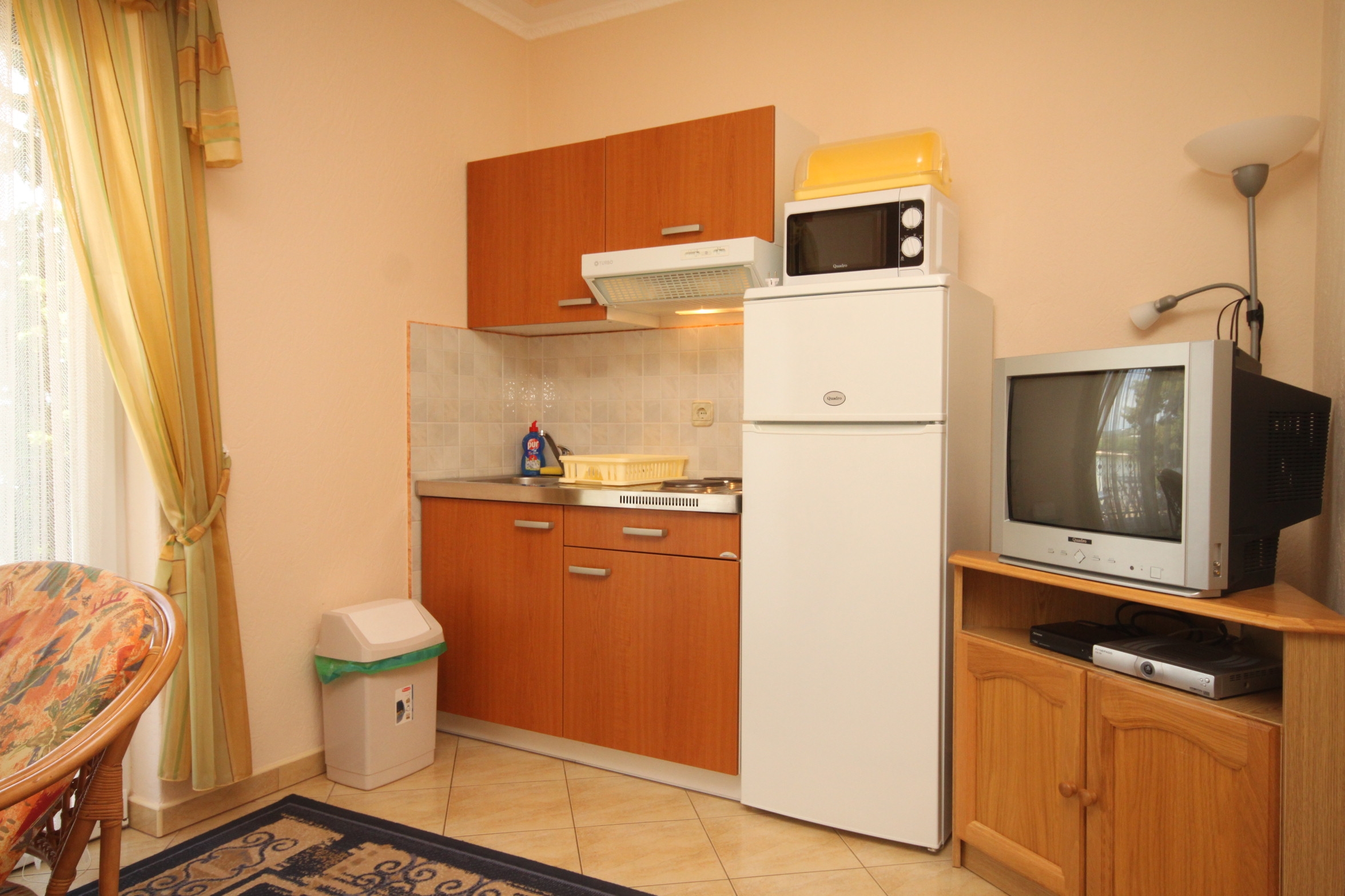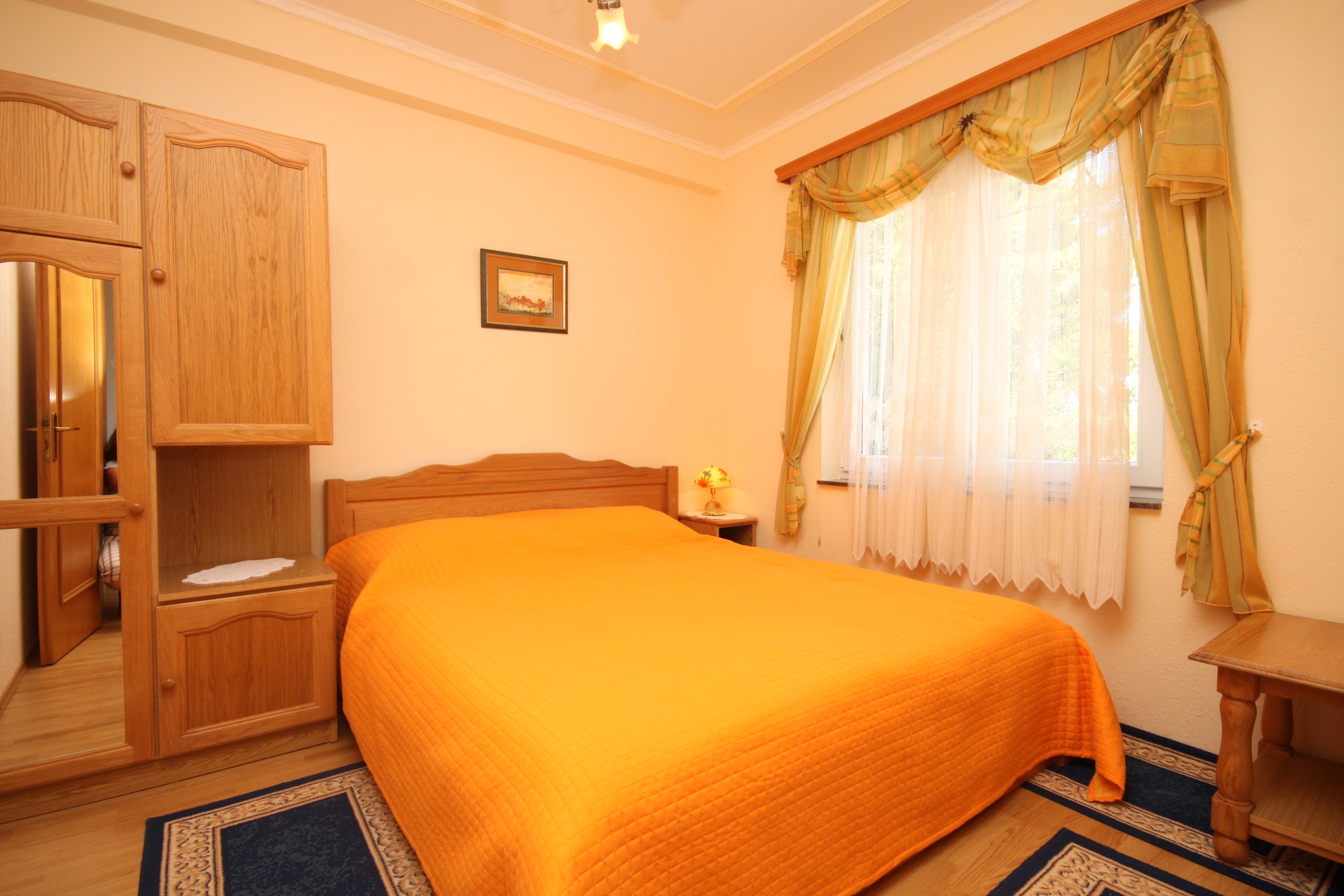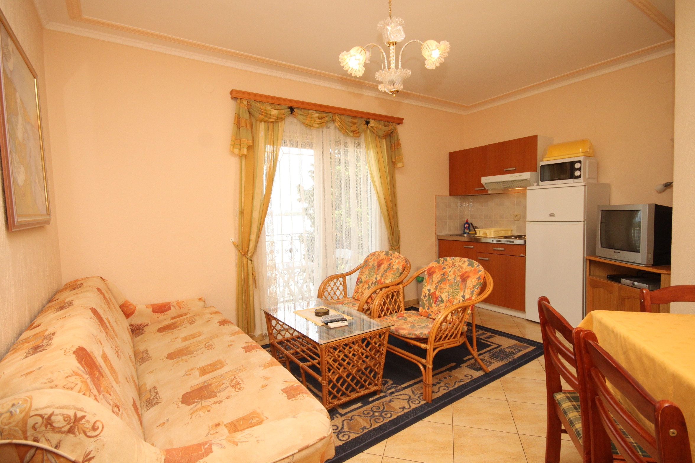Apartment can accommodate 3 guests. Beds are situated in 1 sleeping rooms, but also in the living room, within 30m2. Guests can use a private balcony to enjoy the warm summer evenings. The apartment offers the sea view. Food can be prepared using barbecue which is shared with other guests too. INCLUDED IN THE PRICE: final cleaning, air-conditioning, parking, internet, iron, ironing board, hairdryer, sunchairs. OBLIGATORY ADDITIONAL COSTS: tourist tax (adults €0.93 - €1.50 nightperson, discount for children aged 12 - 17), short stay fee (surcharge depending on a number of booked nights: 30% - 1, 20% - 2, 10% - 3). OPTIONAL ADDITIONAL COSTS: additional bed (€10.00 per night). The availability of additional services for your chosen dates of stay, as well as their prices (if none are listed) must be checked ahead of time. Any additional services not shown in the price calculation are payable directly to the property owner and only if used by the visitor.