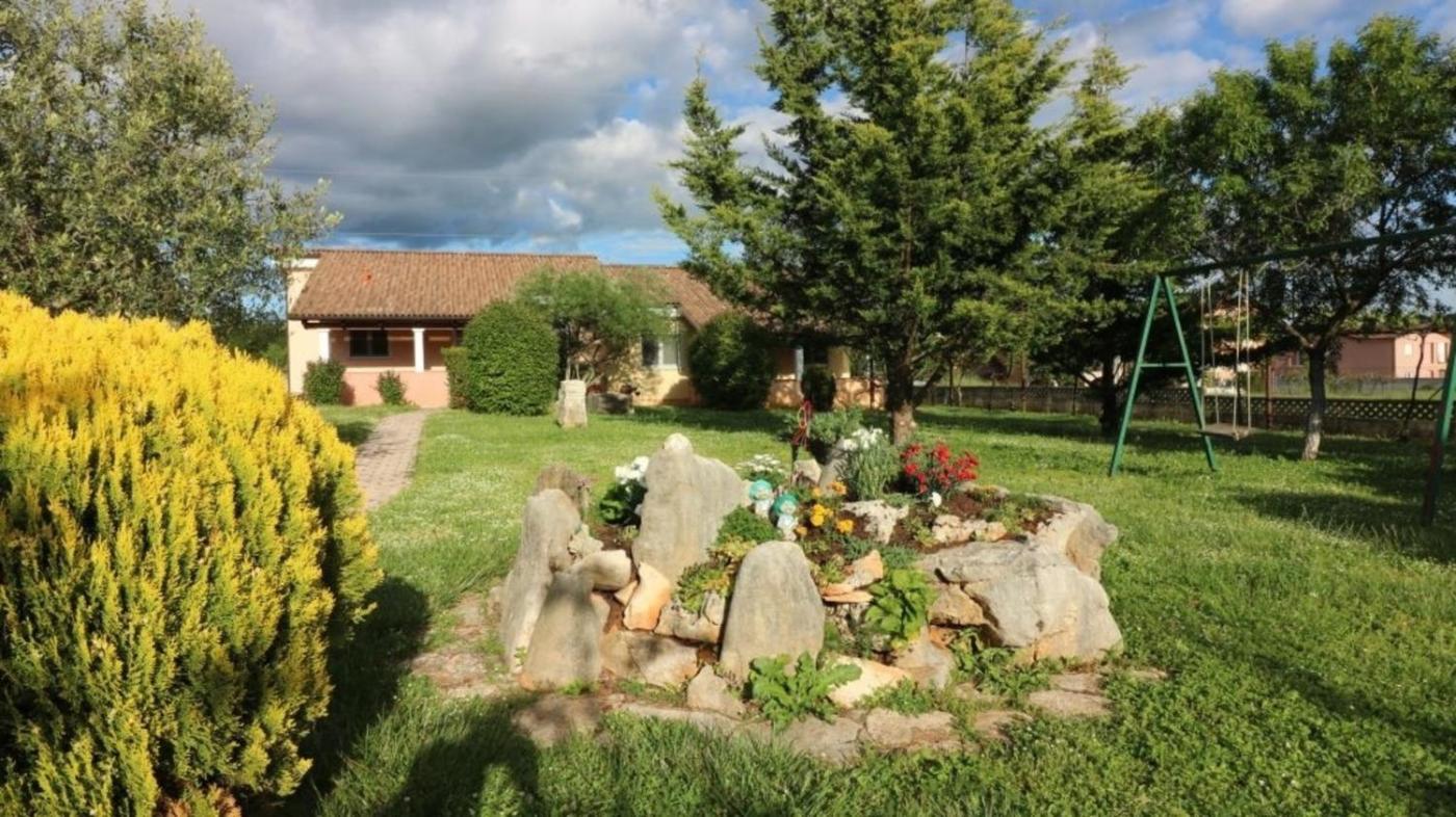 In addition to a seasonal outdoor pool, the holiday home also features a childrens playground.