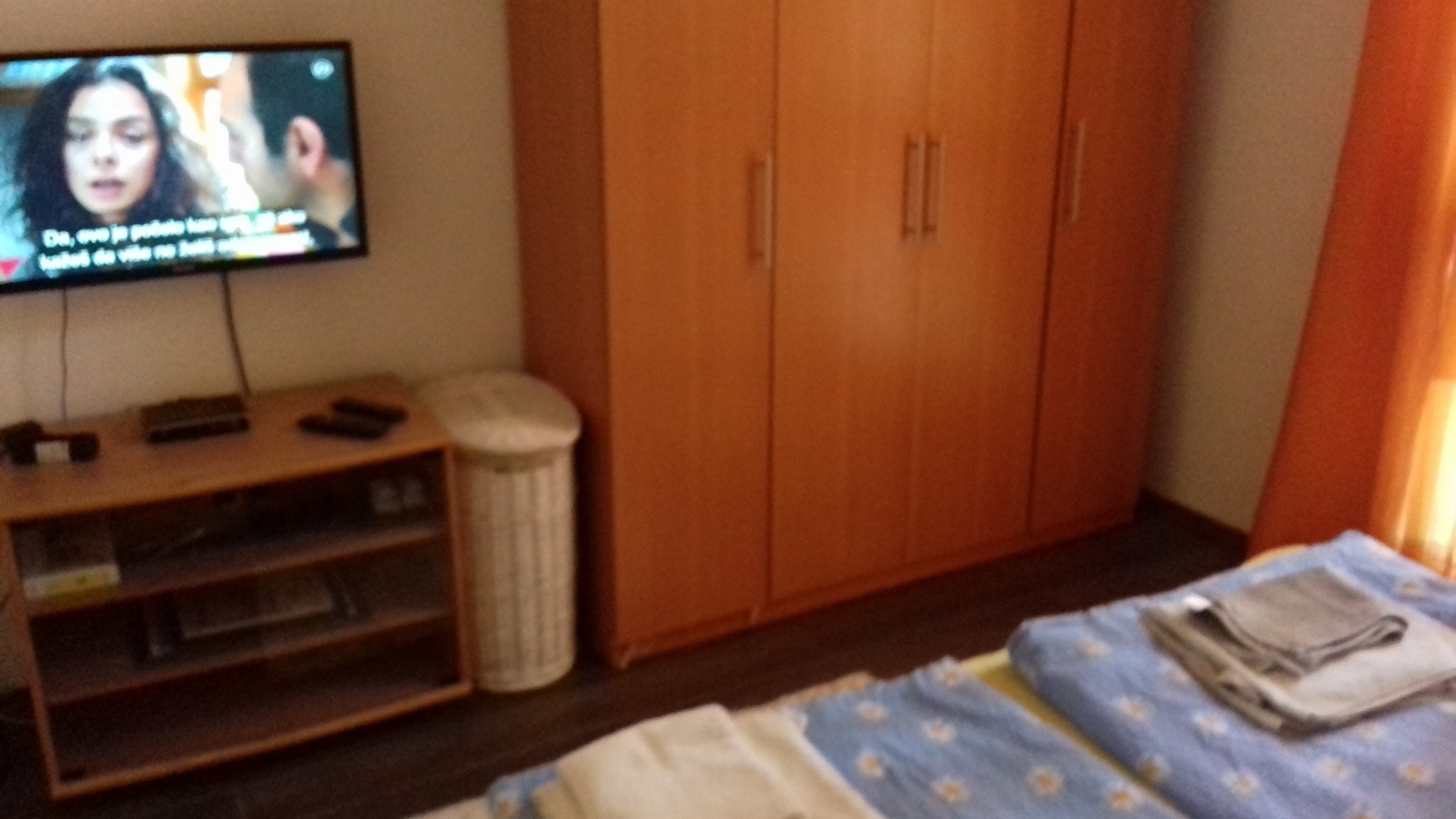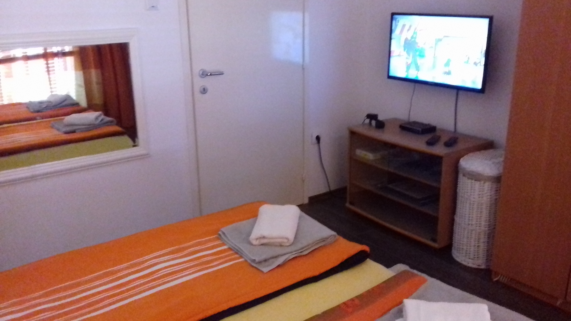 Apartment can accommodate 2 guests. Beds are situated in 1 sleeping rooms, within 40m2. Guests can use a private terrace to enjoy the warm summer evenings. INCLUDED IN THE PRICE: tourist tax, final cleaning, internet, iron, hairdryer, 2 beds for children (included in the price). OPTIONAL ADDITIONAL COSTS: air-conditioning (€5.00 per night). The availability of additional services for your chosen dates of stay, as well as their prices (if none are listed) must be checked ahead of time. Any additional services not shown in the price calculation are payable directly to the property owner and only if used by the visitor.