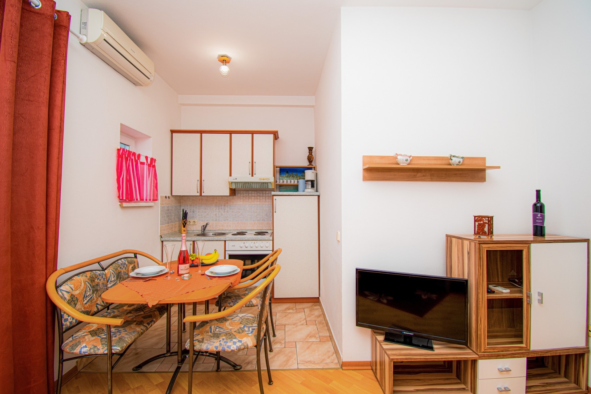 Apartment can accommodate 4 guests. Beds are situated in 1 sleeping rooms, but also in the living room, within 42m2. Guests can use a private terrace to enjoy the warm summer evenings. Food can be prepared using barbecue which is shared with other guests too. This accommodation unit welcomes pets at an additional charge. INCLUDED IN THE PRICE: tourist tax, final cleaning, air-conditioning, central heating, parking, internet. OBLIGATORY ADDITIONAL COSTS: short stay fee (surcharge depending on a number of booked nights: 30% - 1, 20% - 2, 10% - 3). OPTIONAL ADDITIONAL COSTS: laundry (€10.00 washing), pets (€7.00 per night). The availability of additional services for your chosen dates of stay, as well as their prices (if none are listed) must be checked ahead of time. Any additional services not shown in the price calculation are payable directly to the property owner and only if used by the visitor.