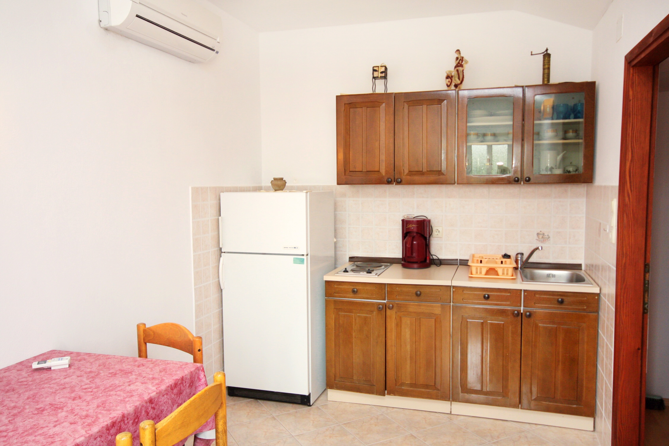 Apartment can accommodate 3 guests. Beds are situated in 1 sleeping rooms, within 29m2. Guests can use a private terrace to enjoy the warm summer evenings. The apartment offers the sea view. Food can be prepared using barbecue which is shared with other guests too. INCLUDED IN THE PRICE: tourist tax, final cleaning, air-conditioning, parking, internet, iron, ironing board, hairdryer. OBLIGATORY ADDITIONAL COSTS: short stay fee (surcharge depending on a number of booked nights: 30% - 1, 20% - 2, 10% - 3). OPTIONAL ADDITIONAL COSTS: boat mooring (€10.00 per night). The availability of additional services for your chosen dates of stay, as well as their prices (if none are listed) must be checked ahead of time. Any additional services not shown in the price calculation are payable directly to the property owner and only if used by the visitor.