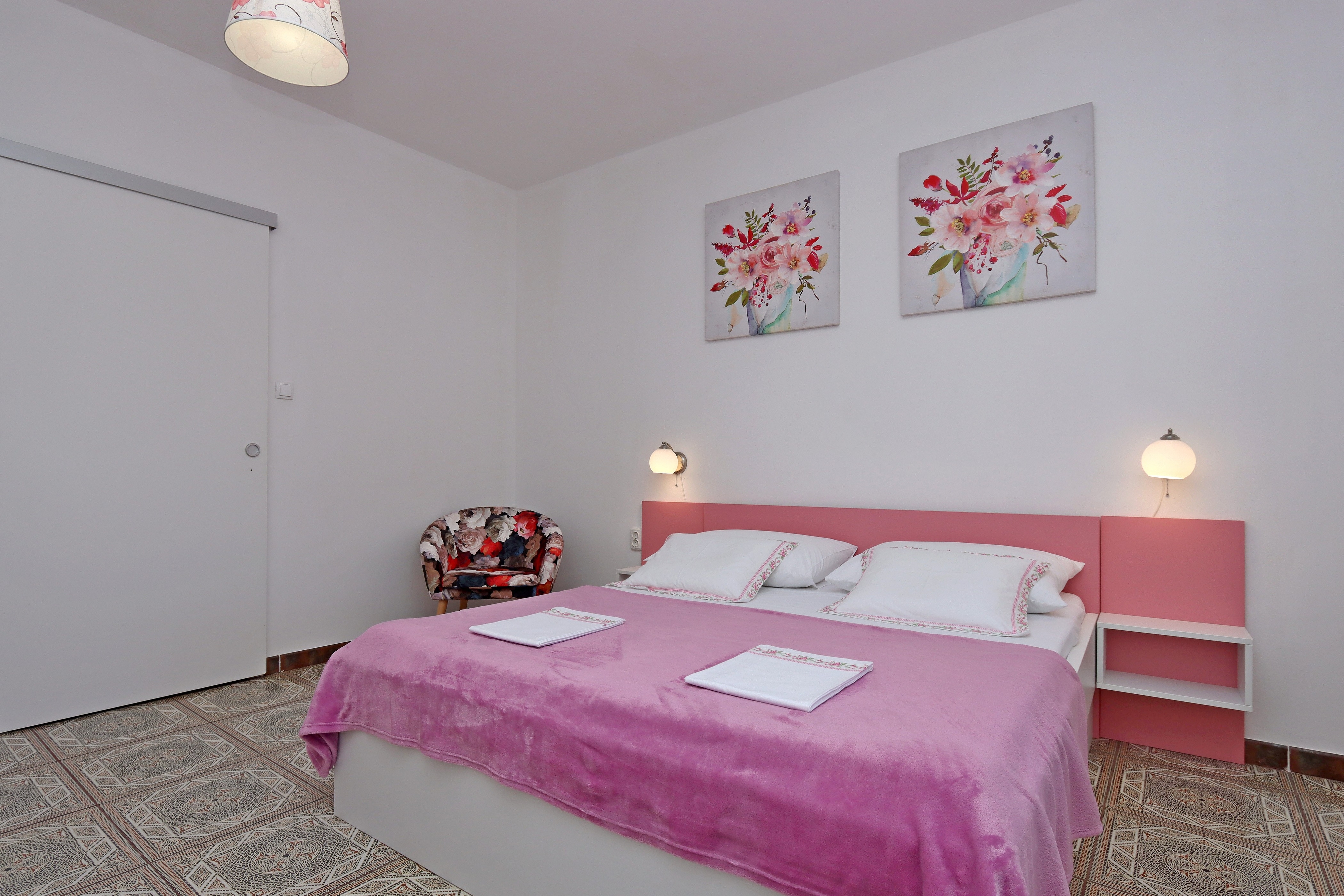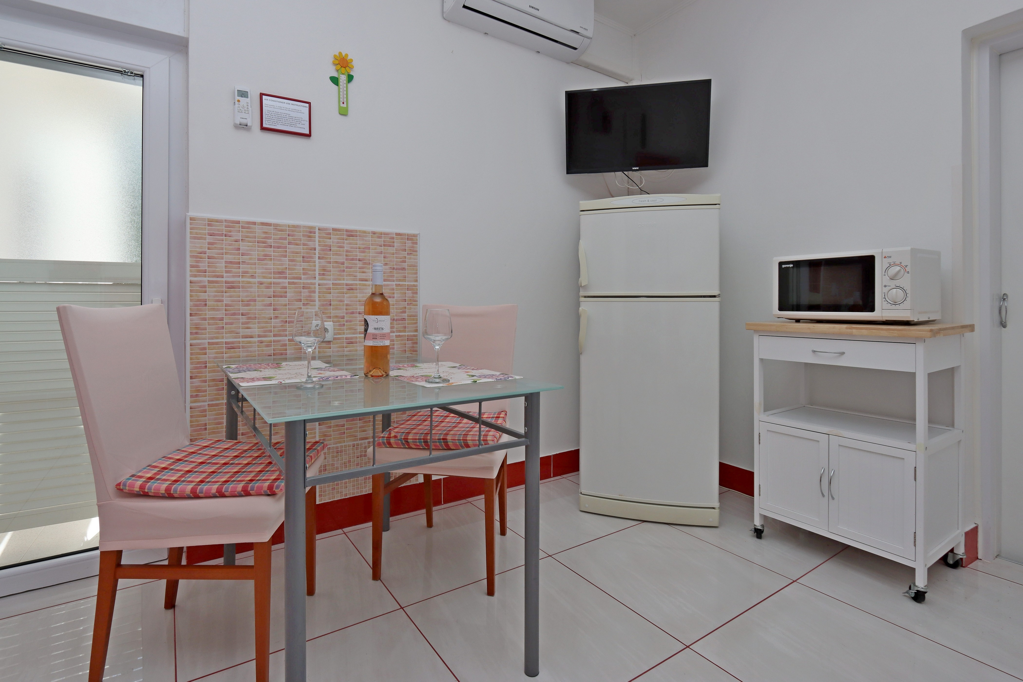 Apartment can accommodate 2 guests. Beds are situated in 1 sleeping rooms, within 26m2. Guests can use a private terrace to enjoy the warm summer evenings. The apartment offers the sea view. Food can be prepared using barbecue which is shared with other guests too. INCLUDED IN THE PRICE: tourist tax, final cleaning, air-conditioning, parking, internet, 1 bed for children (included in the price). OBLIGATORY ADDITIONAL COSTS: short stay fee (surcharge depending on a number of booked nights: 30% - 1, 20% - 2, 10% - 3). OPTIONAL ADDITIONAL COSTS: laundry (€5.00 washing). The availability of additional services for your chosen dates of stay, as well as their prices (if none are listed) must be checked ahead of time. Any additional services not shown in the price calculation are payable directly to the property owner and only if used by the visitor.