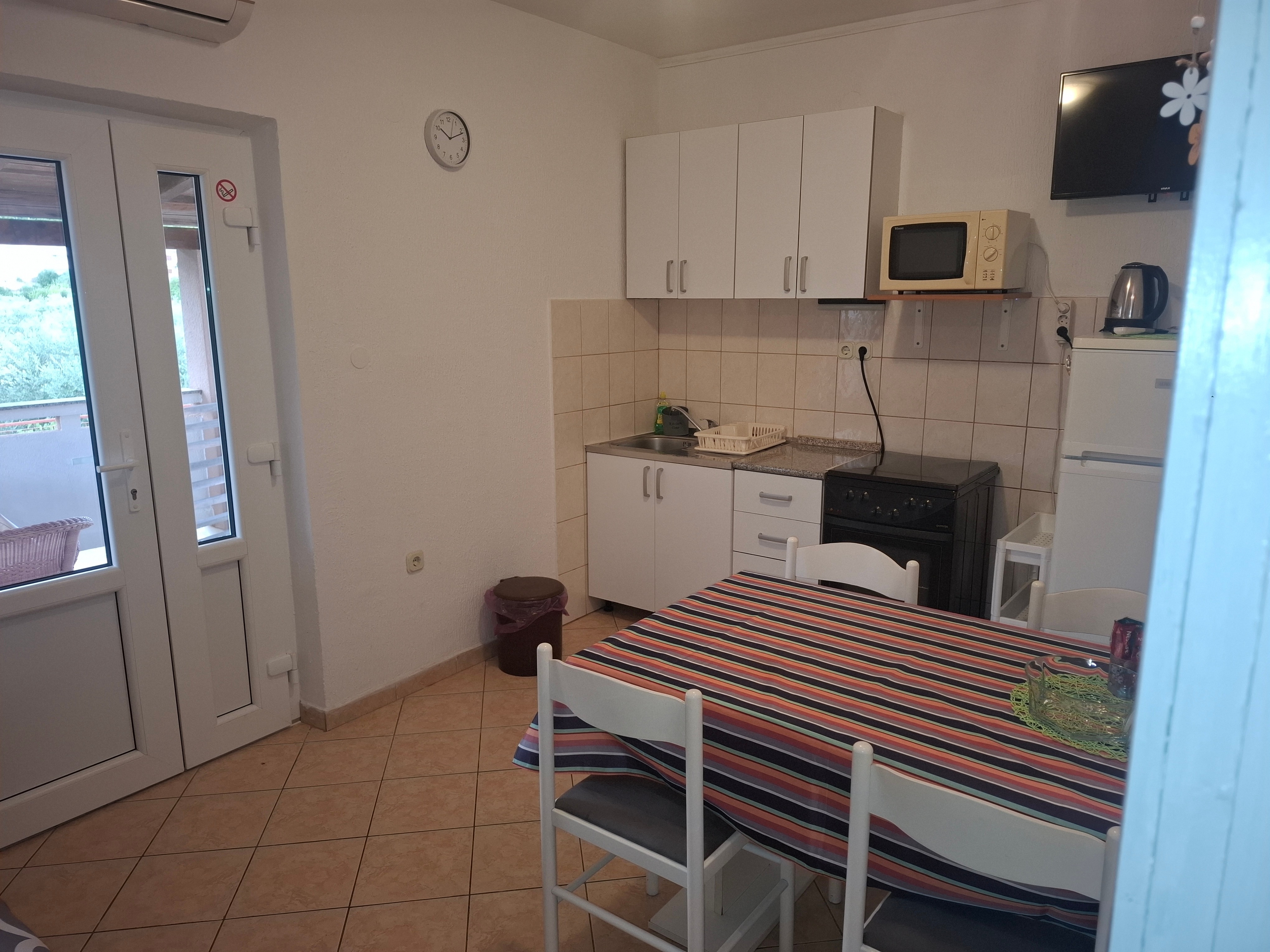 Apartment can accommodate 4 guests. Beds are situated in 2 sleeping rooms, within 47m2. Guests can use a private terrace to enjoy the warm summer evenings. Food can be prepared using barbecue which is shared with other guests too. This accommodation unit welcomes pets at an additional charge. INCLUDED IN THE PRICE: tourist tax, final cleaning, air-conditioning, parking, internet, iron, ironing board, hairdryer. OPTIONAL ADDITIONAL COSTS: pets (€6.00 per night). The availability of additional services for your chosen dates of stay, as well as their prices (if none are listed) must be checked ahead of time. Any additional services not shown in the price calculation are payable directly to the property owner and only if used by the visitor.