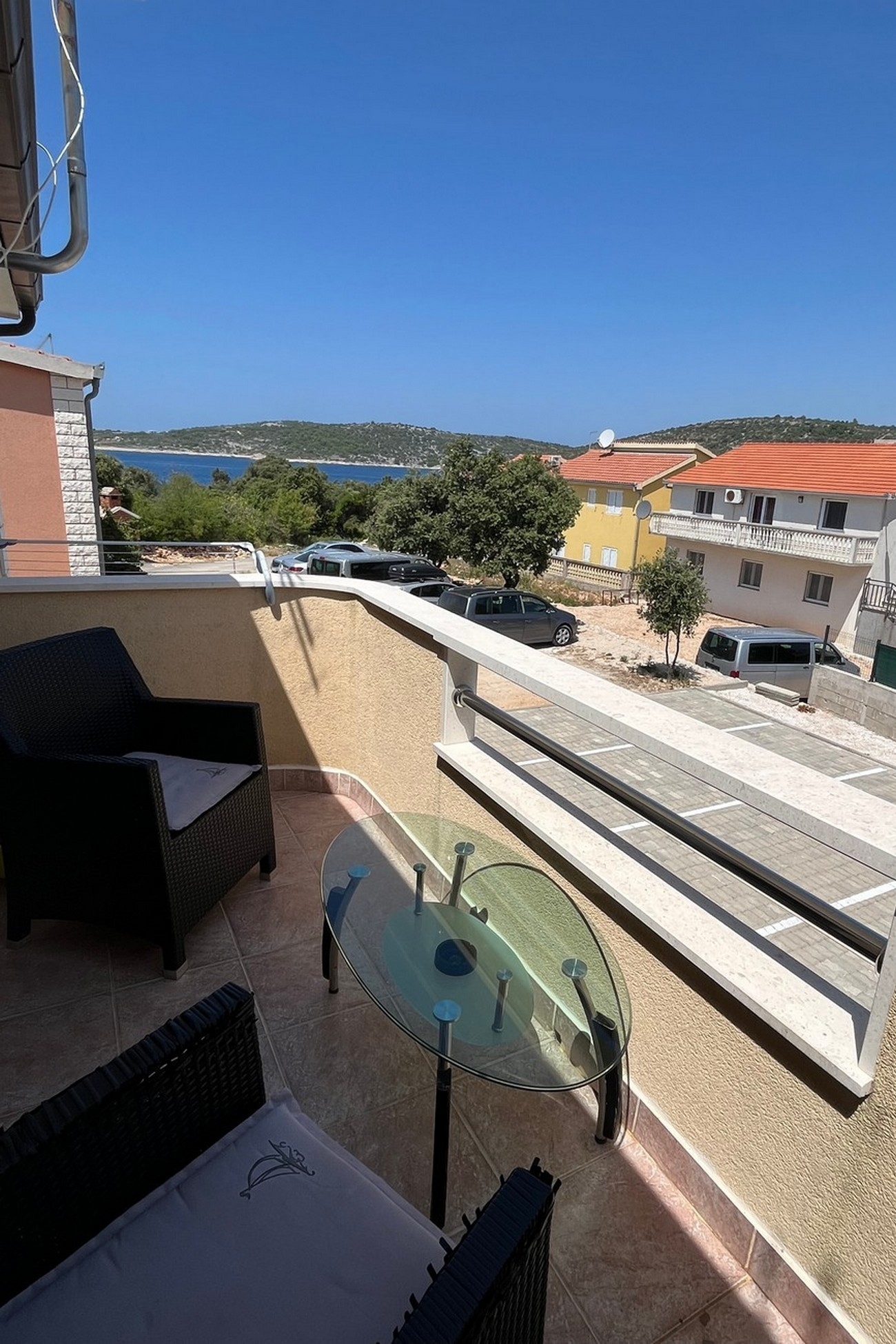 Apartment can accommodate 4 guests. Beds are situated in 1 sleeping rooms, but also in the living room, within 27m2. Guests can use a private balcony to enjoy the warm summer evenings. The apartment offers the sea view. Food can be prepared using barbecue which is shared with other guests too. INCLUDED IN THE PRICE: tourist tax, final cleaning, air-conditioning, parking, internet, hairdryer. The availability of additional services for your chosen dates of stay, as well as their prices (if none are listed) must be checked ahead of time. Any additional services not shown in the price calculation are payable directly to the property owner and only if used by the visitor. Discounts to the base price: free day 28=25 (for stays of 28 days or more, we give you 3 days free of charge for the stay until 31122026).