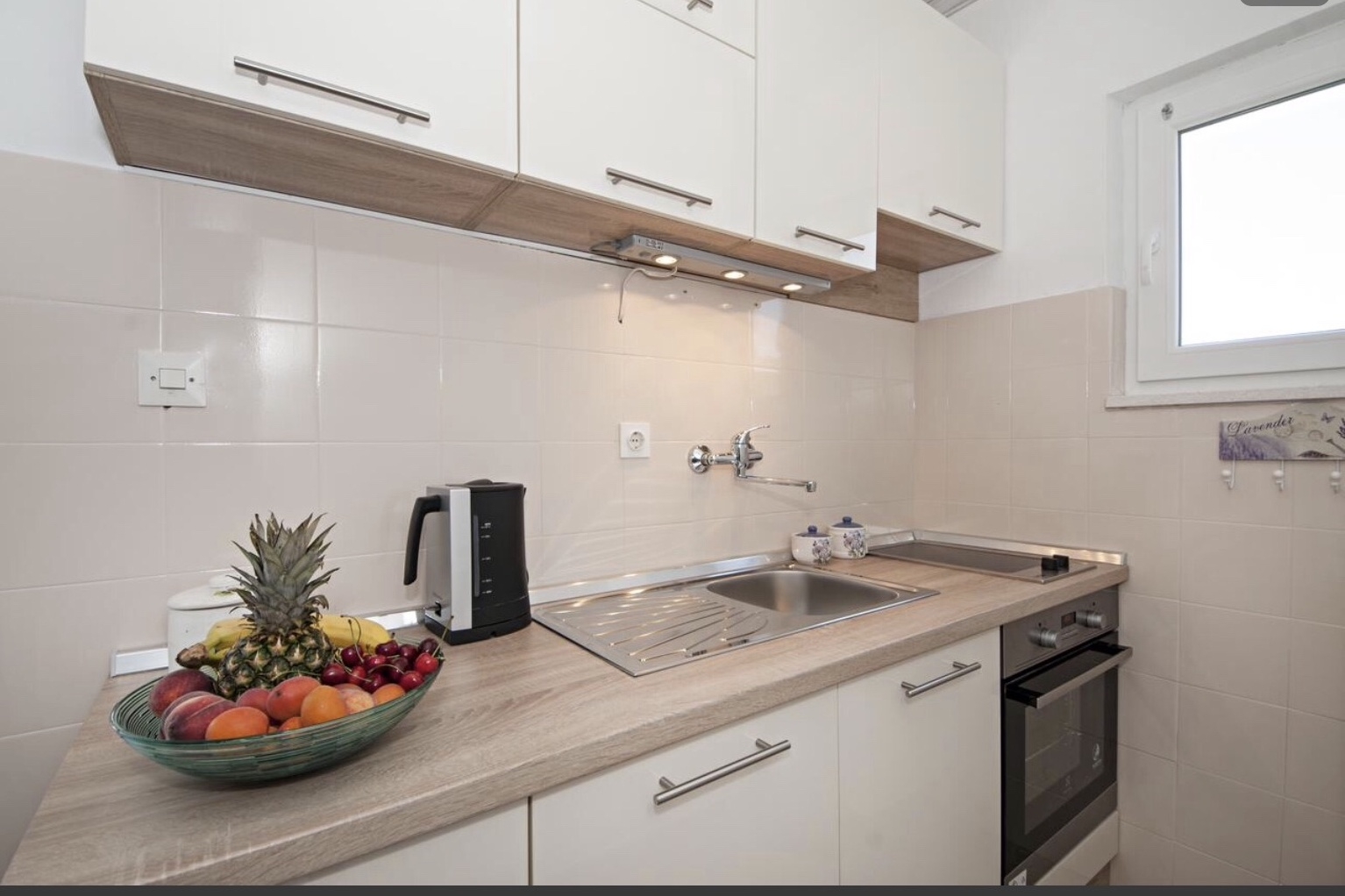 Apartment can accommodate 4 guests. Beds are situated in 2 sleeping rooms, within 33m2. Guests can use a private terrace to enjoy the warm summer evenings. The apartment offers the sea view. Food can be prepared using barbecue which is shared with other guests too. INCLUDED IN THE PRICE: tourist tax, final cleaning, air-conditioning, parking, internet, iron, ironing board, hairdryer, sunshade. The availability of additional services for your chosen dates of stay, as well as their prices (if none are listed) must be checked ahead of time. Any additional services not shown in the price calculation are payable directly to the property owner and only if used by the visitor.