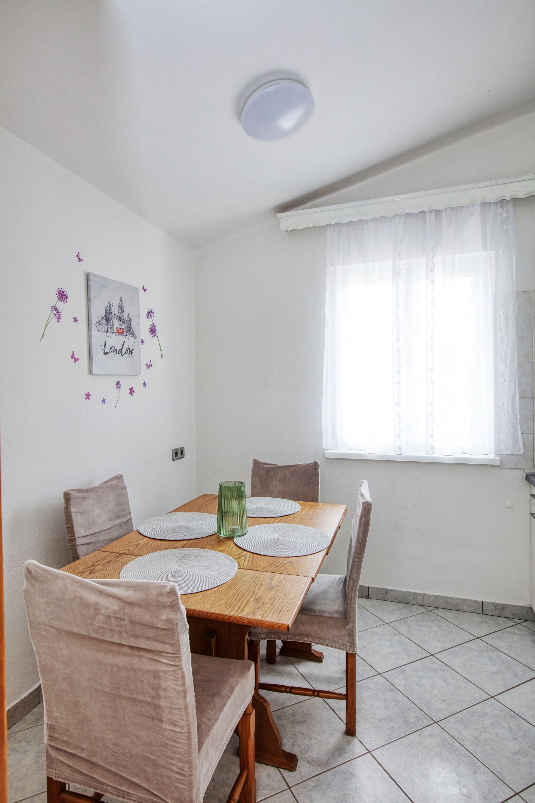 House can accommodate 12 guests. Beds are situated in 5 sleeping rooms, but also in the living room, within 106m2. Guests can use a private terrace to enjoy the warm summer evenings. For full enjoyment and relaxation there is a private barbecue for this accommodation guests only. Notthe rooms of the booked accommodation unit are connectedone whole. INCLUDED IN THE PRICE: tourist tax, final cleaning, air-conditioning, parking, internet, baby cot, hairdryer. OBLIGATORY ADDITIONAL COSTS: short stay fee (surcharge depending on a number of booked nights: 30% - 1, 20% - 2, 10% - 3). OPTIONAL ADDITIONAL COSTS: boat mooring (€10.00 per night). The availability of additional services for your chosen dates of stay, as well as their prices (if none are listed) must be checked ahead of time. Any additional services not shown in the price calculation are payable directly to the property owner and only if used by the visitor.