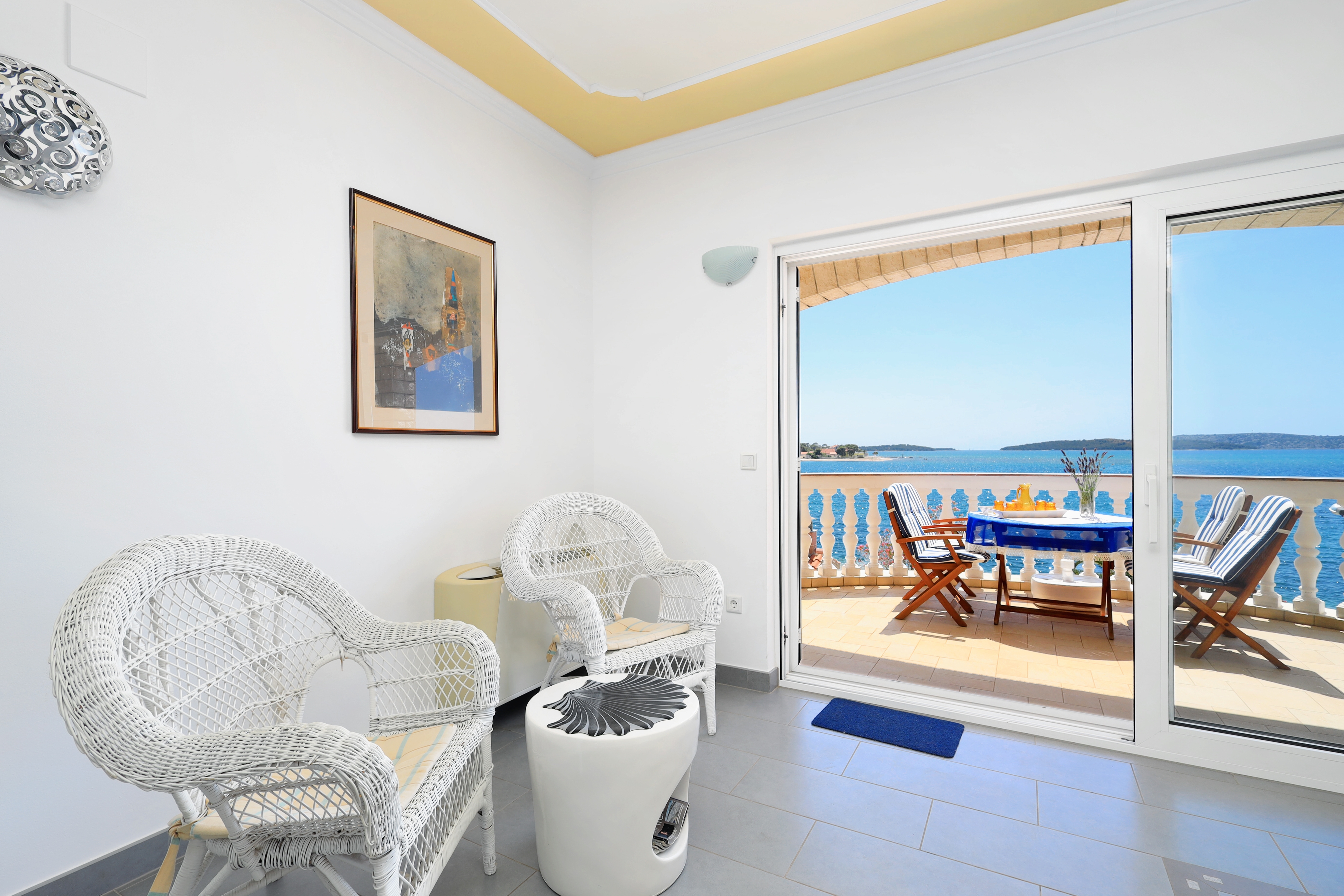 Apartment can accommodate 4 guests. Beds are situated in 2 sleeping rooms, within 85m2. Guests can use a private terrace to enjoy the warm summer evenings. The apartment offers the sea view. Food can be prepared using barbecue which is shared with other guests too. INCLUDED IN THE PRICE: tourist tax, final cleaning, air-conditioning, parking, internet, boat mooring, iron, ironing board. OBLIGATORY ADDITIONAL COSTS: short stay fee (surcharge depending on a number of booked nights: 30% - 1, 20% - 2, 10% - 3). OPTIONAL ADDITIONAL COSTS: laundry (€12.00 washing), additional bed (€40.00 per night). The availability of additional services for your chosen dates of stay, as well as their prices (if none are listed) must be checked ahead of time. Any additional services not shown in the price calculation are payable directly to the property owner and only if used by the visitor.