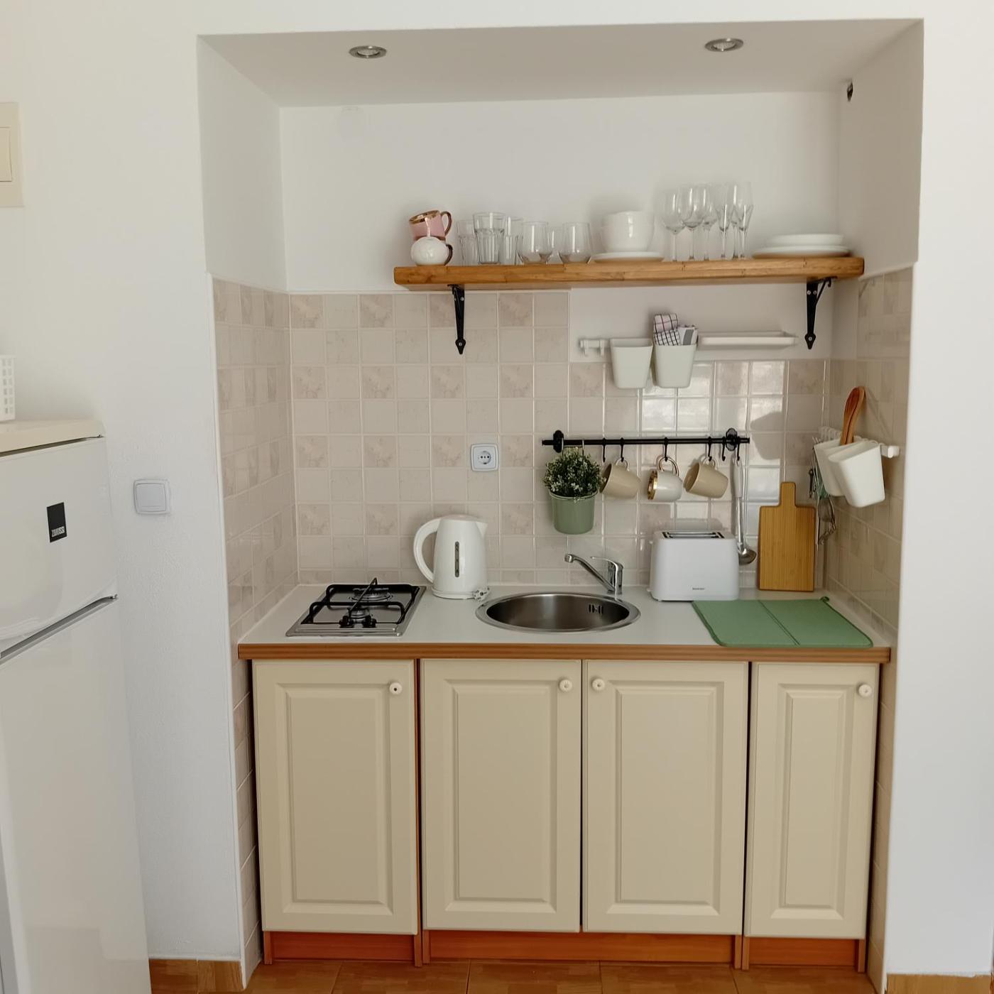 Studio Apartment with Sea View. Featuring a private entrance, this air-conditioned apartment comprises 1 bedroom and 1 bathroom with a shower. Guests will find a stovetop, a refrigerator, kitchenware and an electric kettle in the well-fitted kitchen. The apartment also provides guests with a barbecue. Boasting a balcony with sea views, this apartment also provides soundproof walls and a flat-screen TV. The unit offers 1 bed. ;