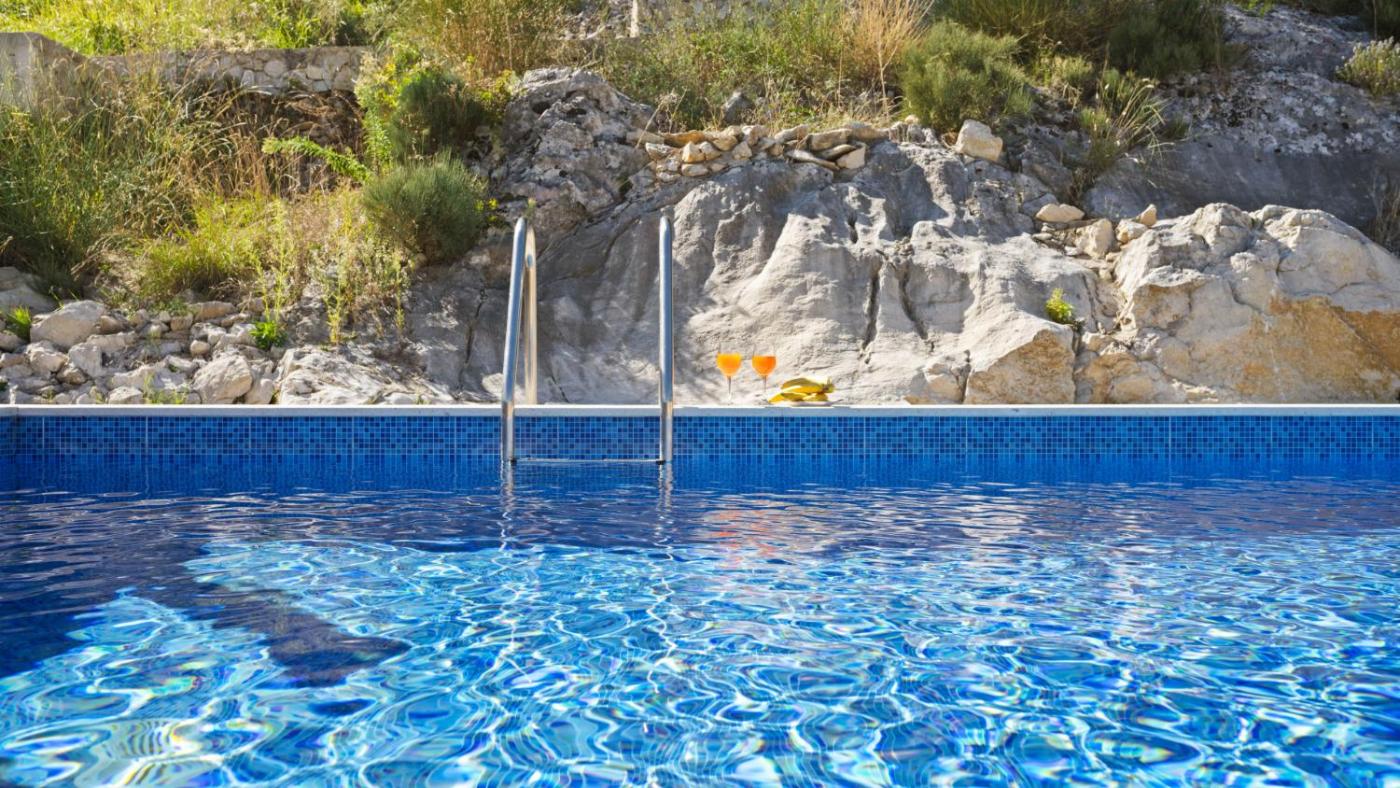 Guests can enjoy the outdoor swimming pool and garden at the villa.