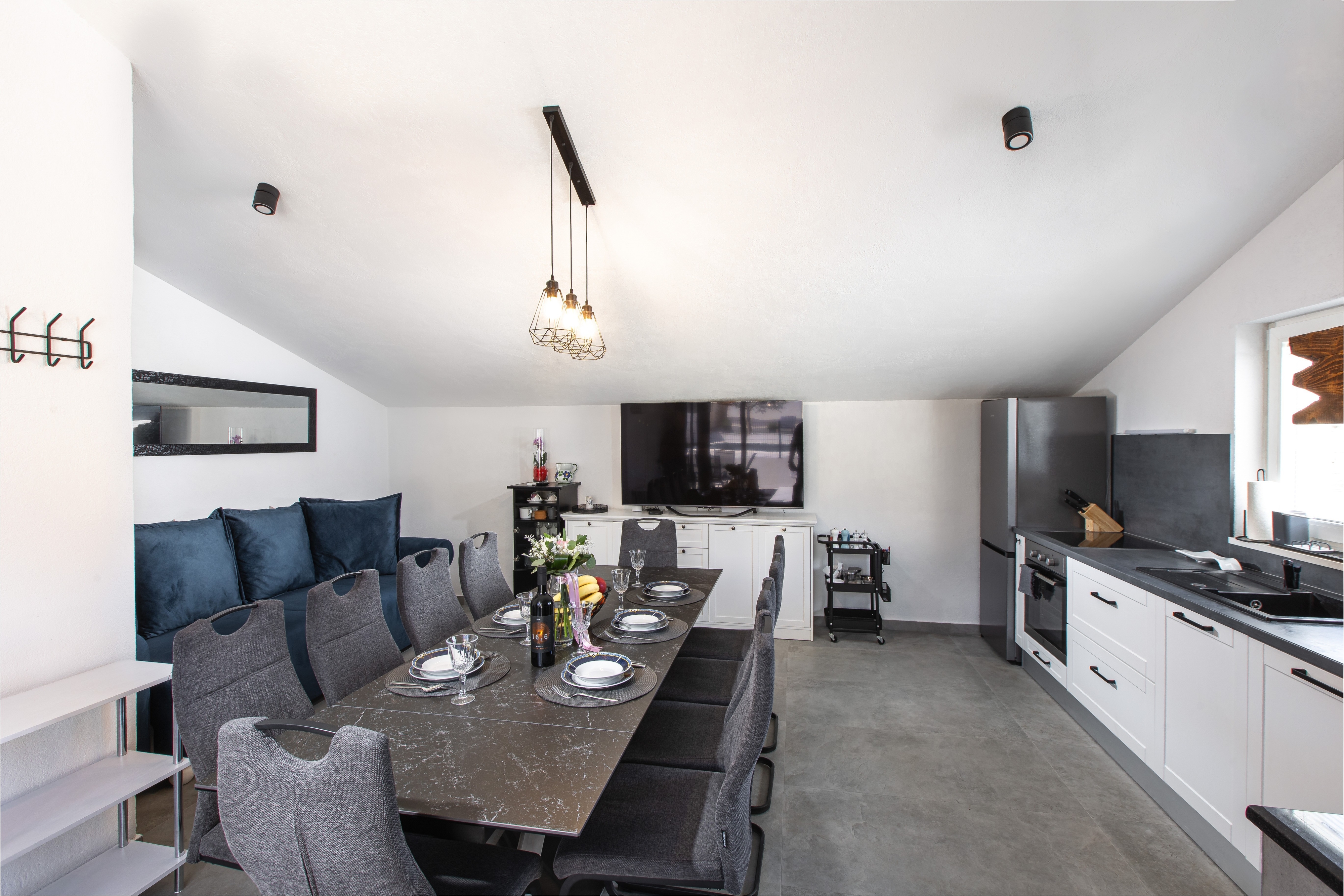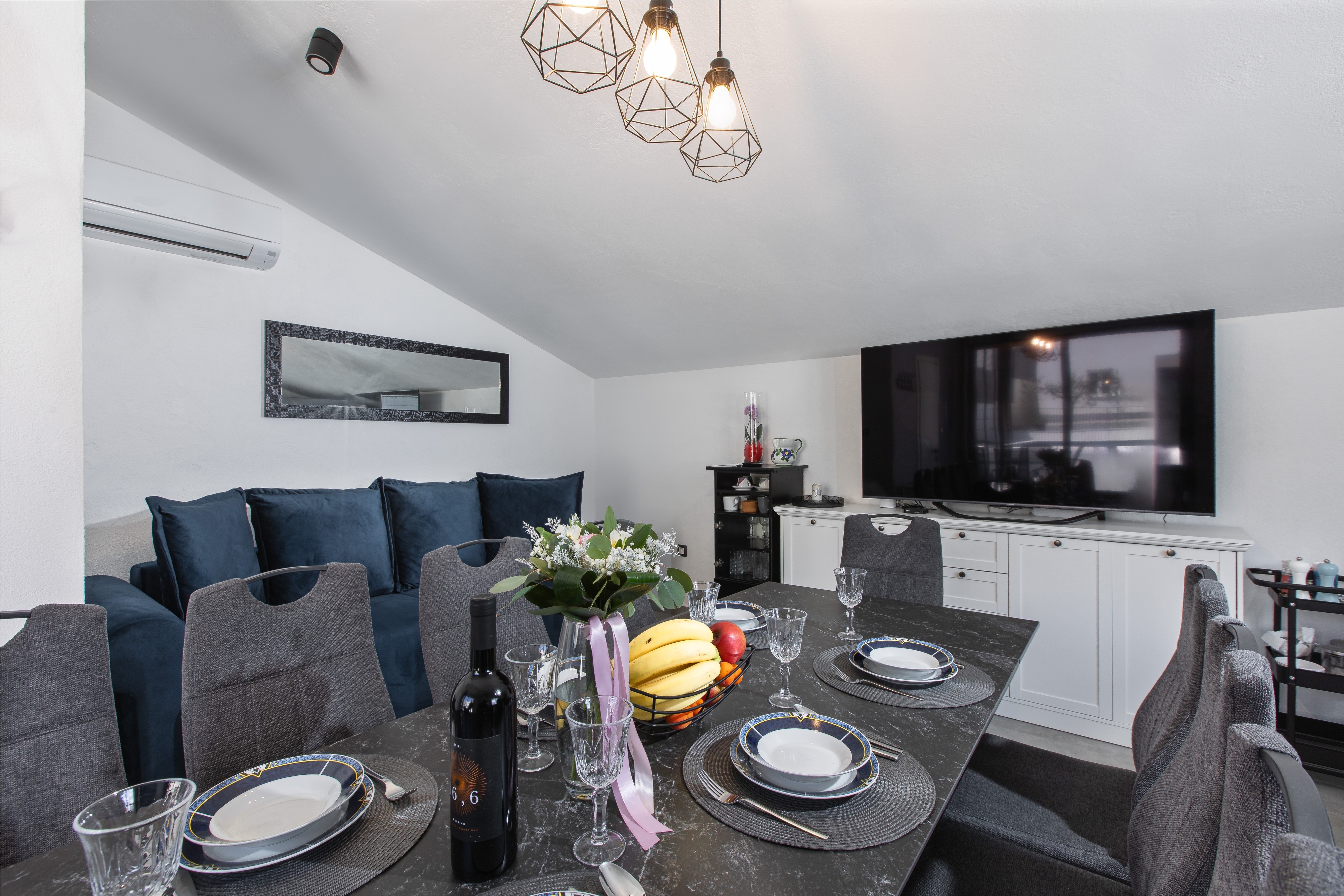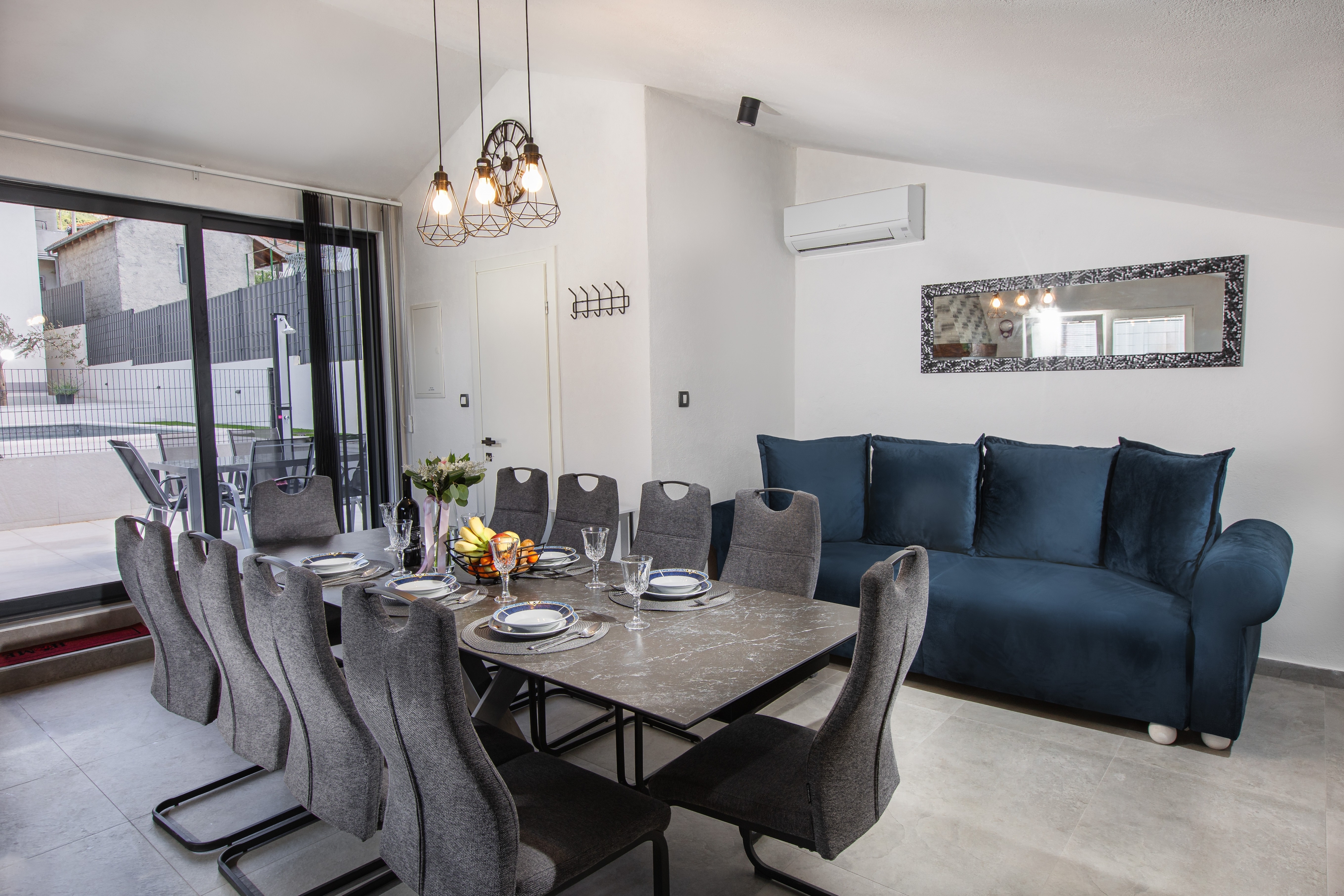 House can accommodate 8 guests. Beds are situated in 4 sleeping rooms, but also in the living room, within 126m2. Guests can use a private balcony to enjoy the warm summer evenings. For full enjoyment and relaxation there is a private barbecue for this accommodation guests only. Shared pool is on disposal during stay. Notthe rooms of the booked accommodation unit are connectedone whole. INCLUDED IN THE PRICE: tourist tax, final cleaning, air-conditioning, pool, parking, garage, internet, iron, ironing board, hairdryer. The availability of additional services for your chosen dates of stay, as well as their prices (if none are listed) must be checked ahead of time. Any additional services not shown in the price calculation are payable directly to the property owner and only if used by the visitor.
