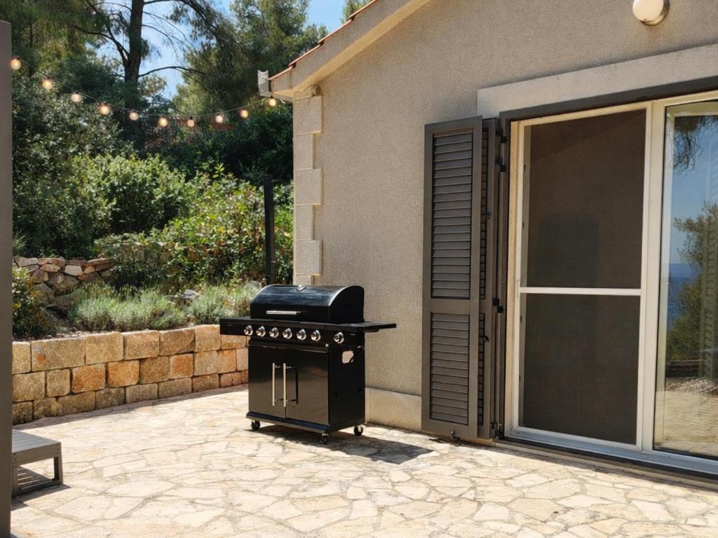 Three-Bedroom House. This holiday home features a hot tub. Boasting a private entrance, this air-conditioned holiday home includes 1 living room, 3 separate bedrooms and 2 bathrooms with a walk-in shower and a hairdryer. Guests will find a stovetop, a refrigerator, a dishwasher and kitchenware in the well-fitted kitchen. The holiday home also features a barbecue. Featuring a terrace with sea views, this holiday home also offers a washing machine and a flat-screen TV with streaming services. The unit has 5 beds.