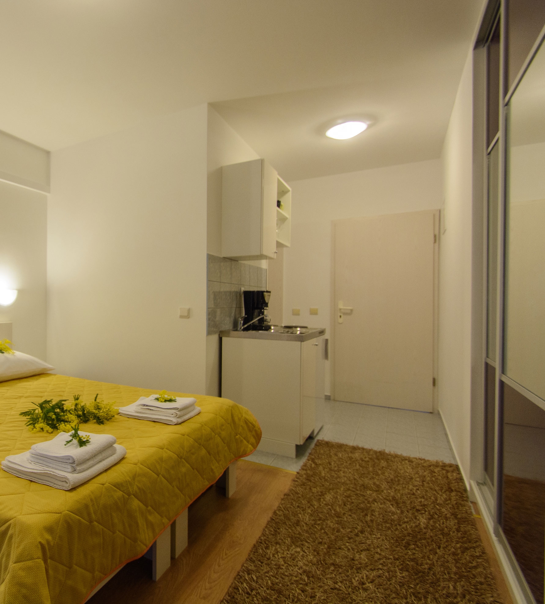 Studio flat can accommodate 2 guests. Beds are situated in 1 sleeping rooms, within 22m2. Guests can use a private balcony to enjoy the warm summer evenings. The studio offers the sea view. Food can be prepared using barbecue which is shared with other guests too. INCLUDED IN THE PRICE: tourist tax, final cleaning, air-conditioning, parking, internet, hairdryer. The availability of additional services for your chosen dates of stay, as well as their prices (if none are listed) must be checked ahead of time. Any additional services not shown in the price calculation are payable directly to the property owner and only if used by the visitor.