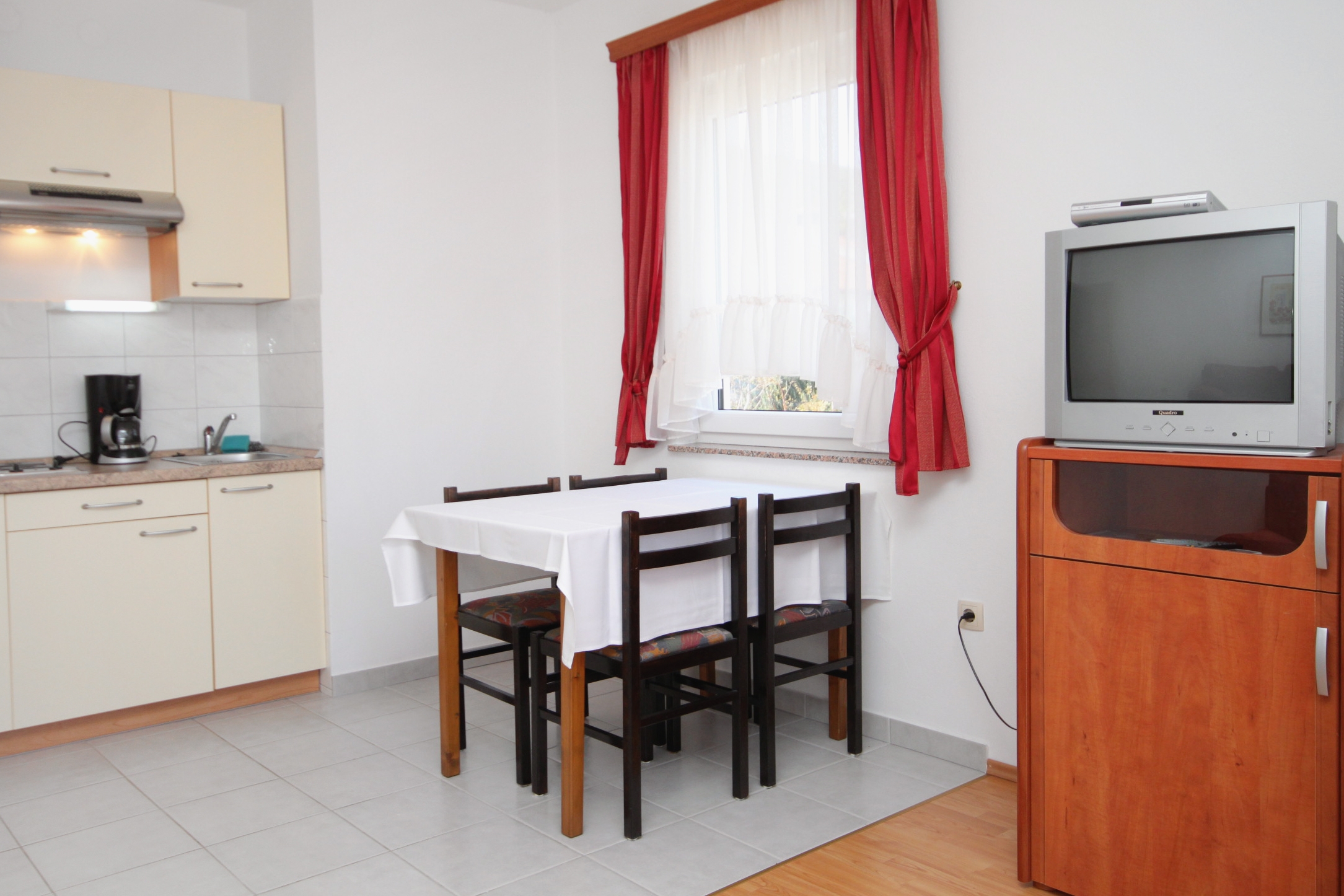 Apartment can accommodate 4 guests. Beds are situated in 1 sleeping rooms, but also in the living room, within 38m2. Guests can use a private terrace to enjoy the warm summer evenings. The apartment offers the sea view. This accommodation unit welcomes pets at an additional charge. INCLUDED IN THE PRICE: final cleaning, air-conditioning, parking, internet, laundry, baby cot, iron, ironing board, hairdryer. OBLIGATORY ADDITIONAL COSTS: tourist tax (adults €0.93 - €1.50 nightperson, discount for children aged 12 - 17), short stay fee (surcharge depending on a number of booked nights: 30% - 1, 20% - 2, 10% - 3). OPTIONAL ADDITIONAL COSTS: breakfast (€13.00, a 50% discount for children aged 4 to 12 years, Children up to age 4 free of charge), half-board (€40.00, a 50% discount for children aged 4 to 12 years, Children up to age 4 free of charge), pets (€3.00 per night). The availability of additional services for your chosen dates of stay, as well as their prices (if none are listed) must be checked ahead of time. Any additional services not shown in the price calculation are payable directly to the property owner and only if used by the visitor.